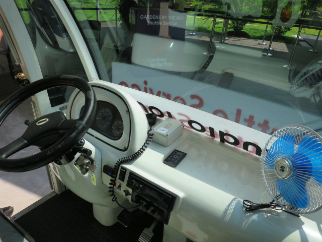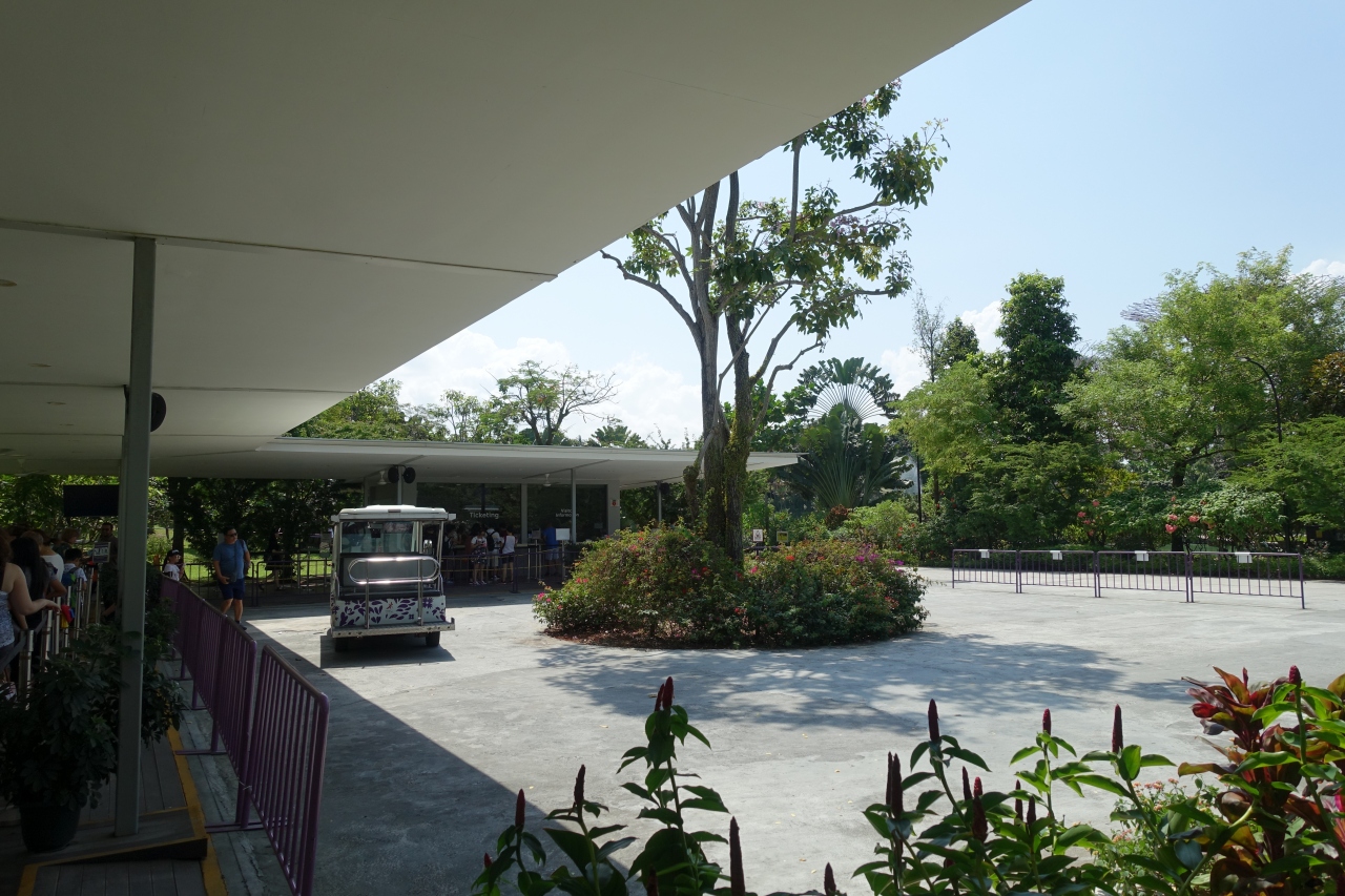 自分はマリーナベイサンズ側のドラゴンフライブリッジ横乗場からウエストゲート廻りでフラワードームの手前までのルートに乗車。マリーナやガーデンの景色もなかなか!というよりも、猛烈な暑さの中歩くのがしんどかったので、大変助かった。