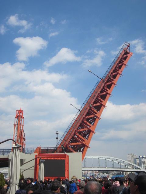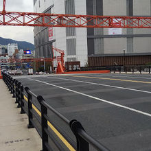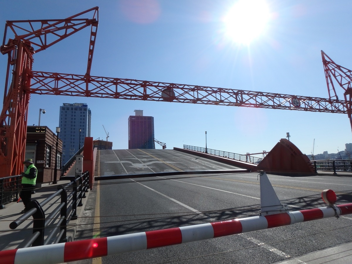 ”跳ね始める”14時の10分位前の橋の袂の様子