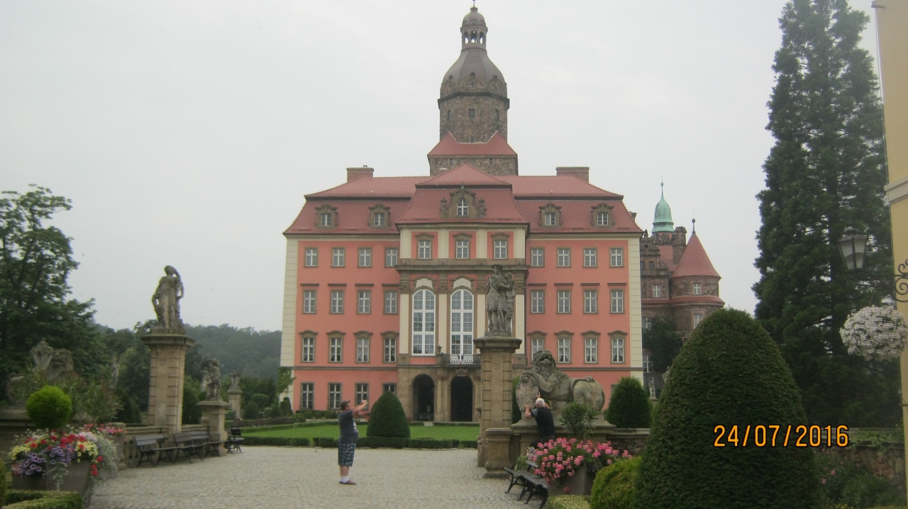 わたくしたちは、ブロツワフから鉄道で約1時間の、最寄りのバウブジフマイアストまで行き、そこからお城行の8番のバスに乗りました。ポーランドの鉄道は、旅行中大幅な遅れは少なかったのですが、乗り換え時間がぎりぎりの時に限って、微妙に遅れるので焦りました。