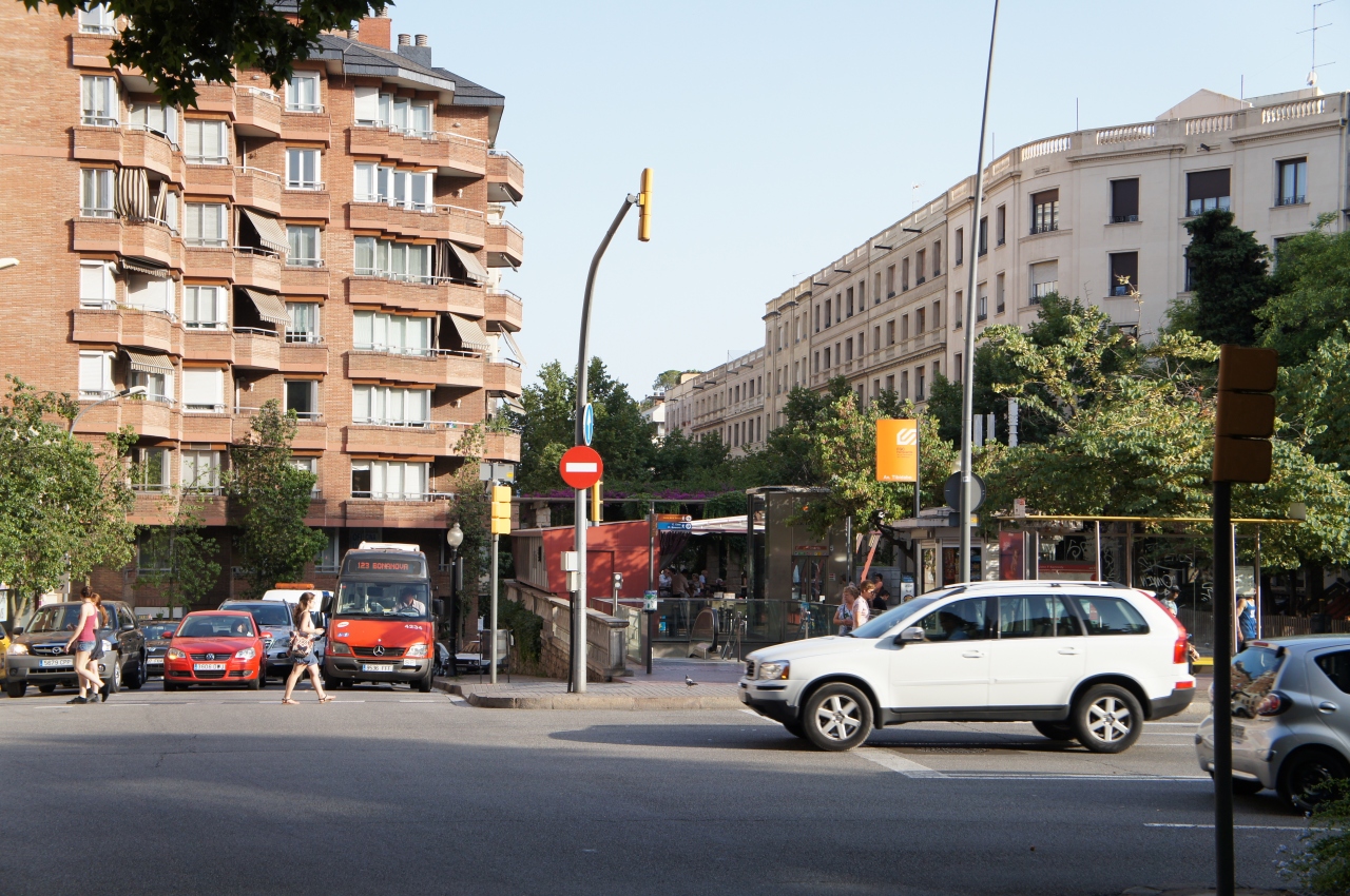 カタルーニャ鉄道の駅を上がった向かいに停留所があります。