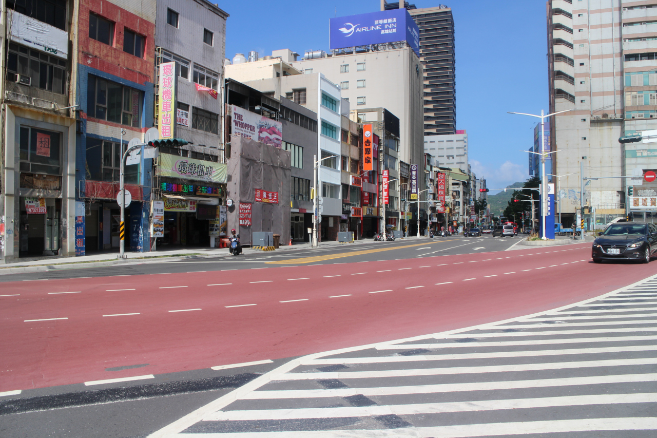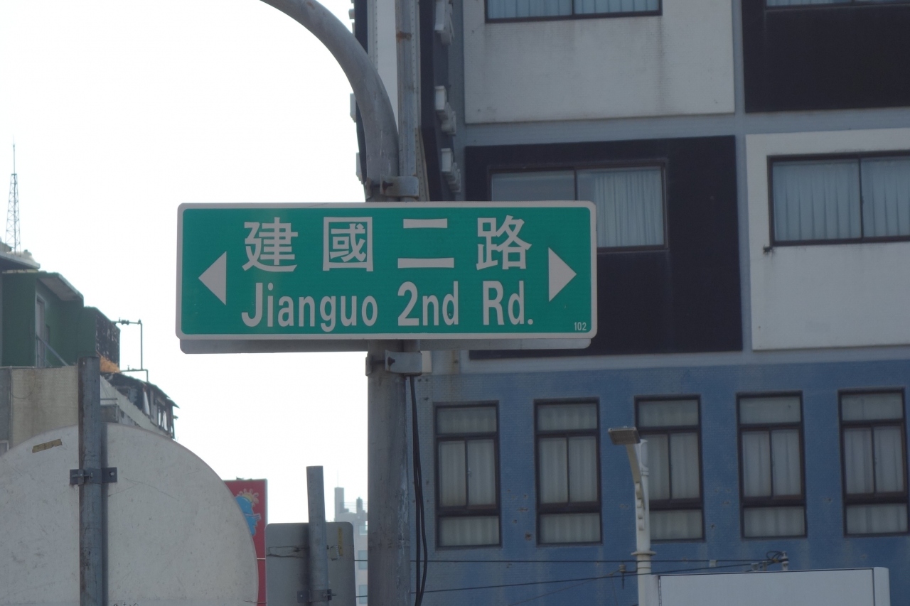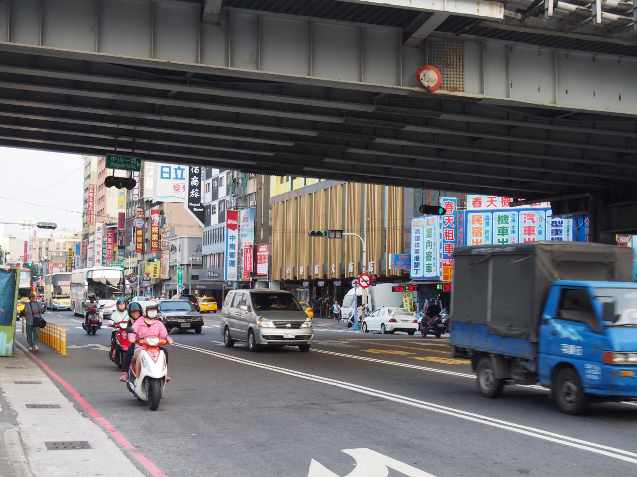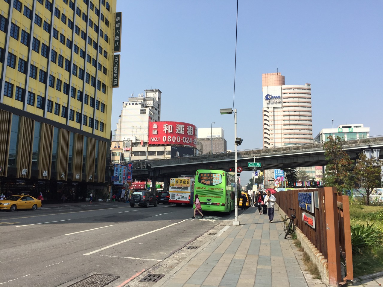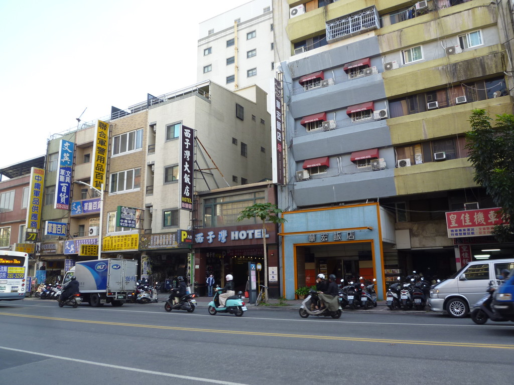 建国二路は東西に走っている道路で、西側は格安ホテル街、東側は電脳街