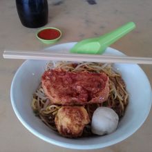 イオンモールKinta Cityに行ったついでにランチを食べることに。土鍋(クレイポット)で炊いたチキンライスがウリの店で... 続きを読むす。12:00〜18:00は一旦閉まるとの情報を得ていたので11:30頃行くと…なんとクレイポット チキン ライスは17:30からの夜の部のみと言われました。ガーン!朝の部は麺類のみということなので仕方なくドライミーを食べることに。注文方法はドライかスープを決めて具を選びます。麺単体は1.8RM、具(写真参照)はどれも1個1RM。フイッシュボールと、揚げシュウマイと大根?の揚げ物の3つをチョイス。合計4.8RM。お味は…うまいです。ドライミーも他の店よりもおいしく感じました。揚げ物はやっぱり麺に合いますね。目当てのものは食べられませんでしたが思わぬ儲けものをしました。逆に夜の部は麺類はありませんのであしからず。ビールもあります。ANCHOR大ビン14RMなど。