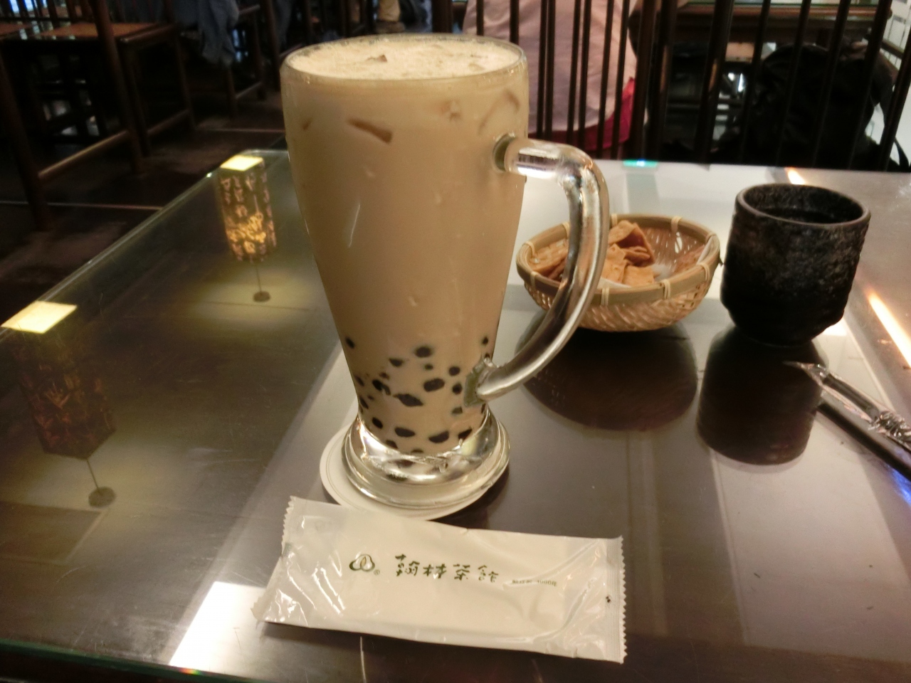 この店は、タピオカ入りミルクティーが有名らしく、多くの人がミルクティーを飲んでいたので、私も冷たいタピオカ入りミルクテーを注文しました。