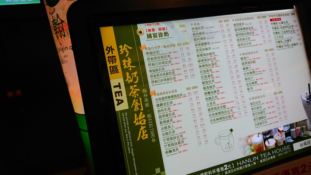 大きなグラスにタピオカがいっぱい入ったミルクテーと冷たいお茶とおせんべみたいなお菓子が出ていて、美味しく頂きました。値段は140元と安くはありませんが、店の雰囲気、味、量を考えれば、いく価値ありです。