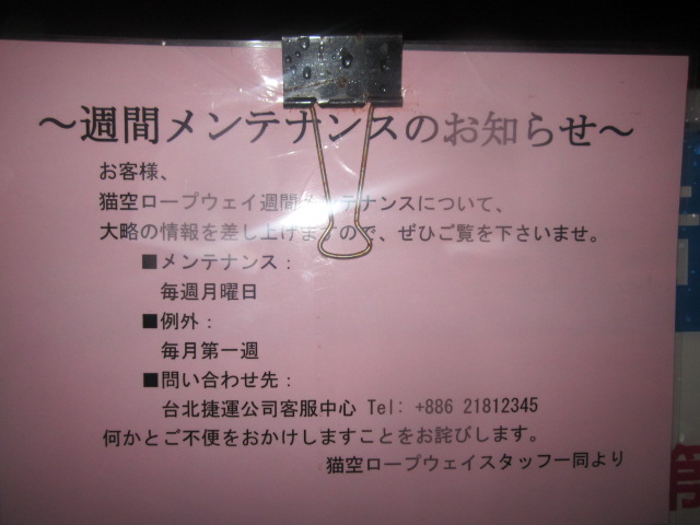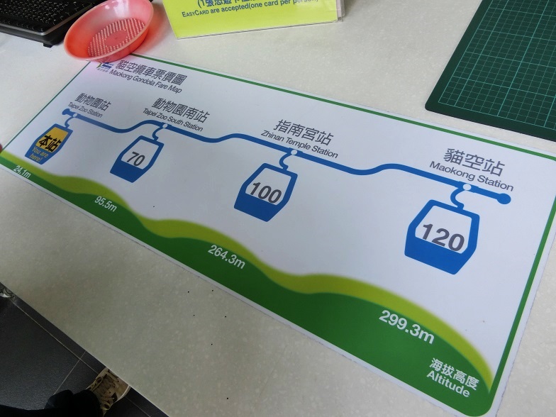 降りれる駅は3つで値段が違う。我が家は猫空駅で120元なり。