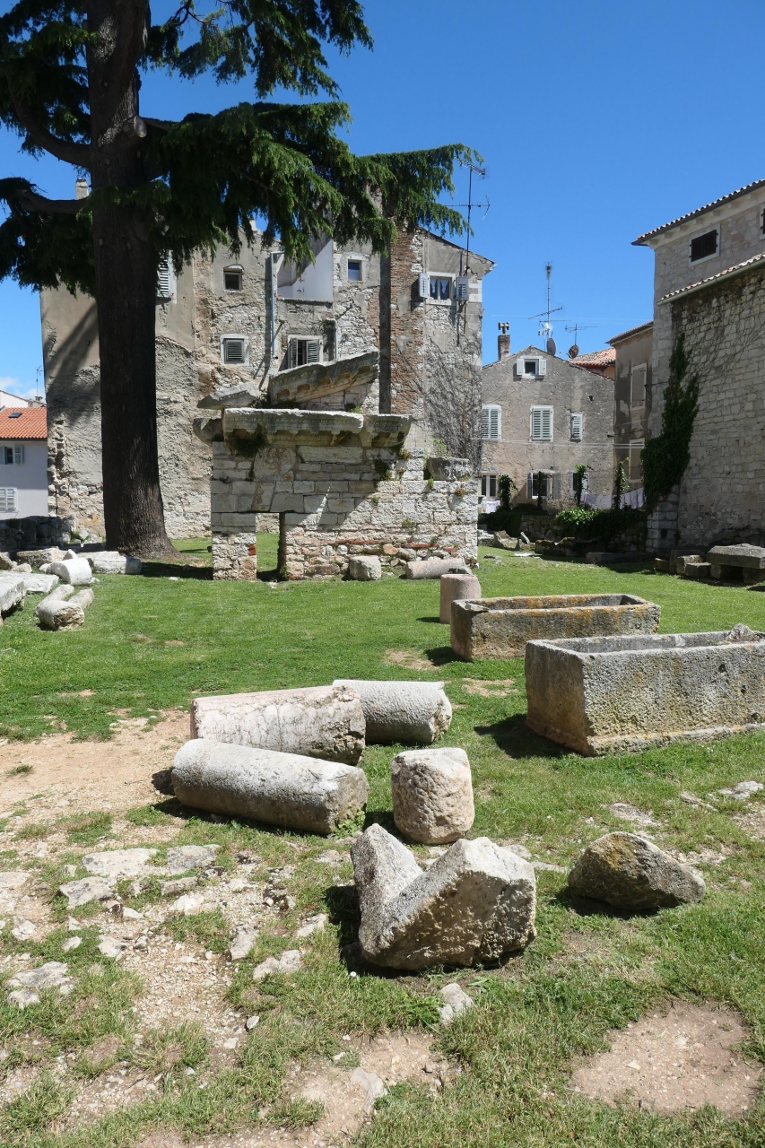ポルチュ旧市街の中心の通りを半島先端に向かってどんどん進むと、大理石柱がゴロゴロ転がっている公園のような場所がありました。... 続きを読む古代ローマ時代の1世紀に建造されたネプチューン神殿があった所です。海の神のネプチューンを祀ったポルチュの神殿は、当時のイストリア半島で最大だったそうです。
