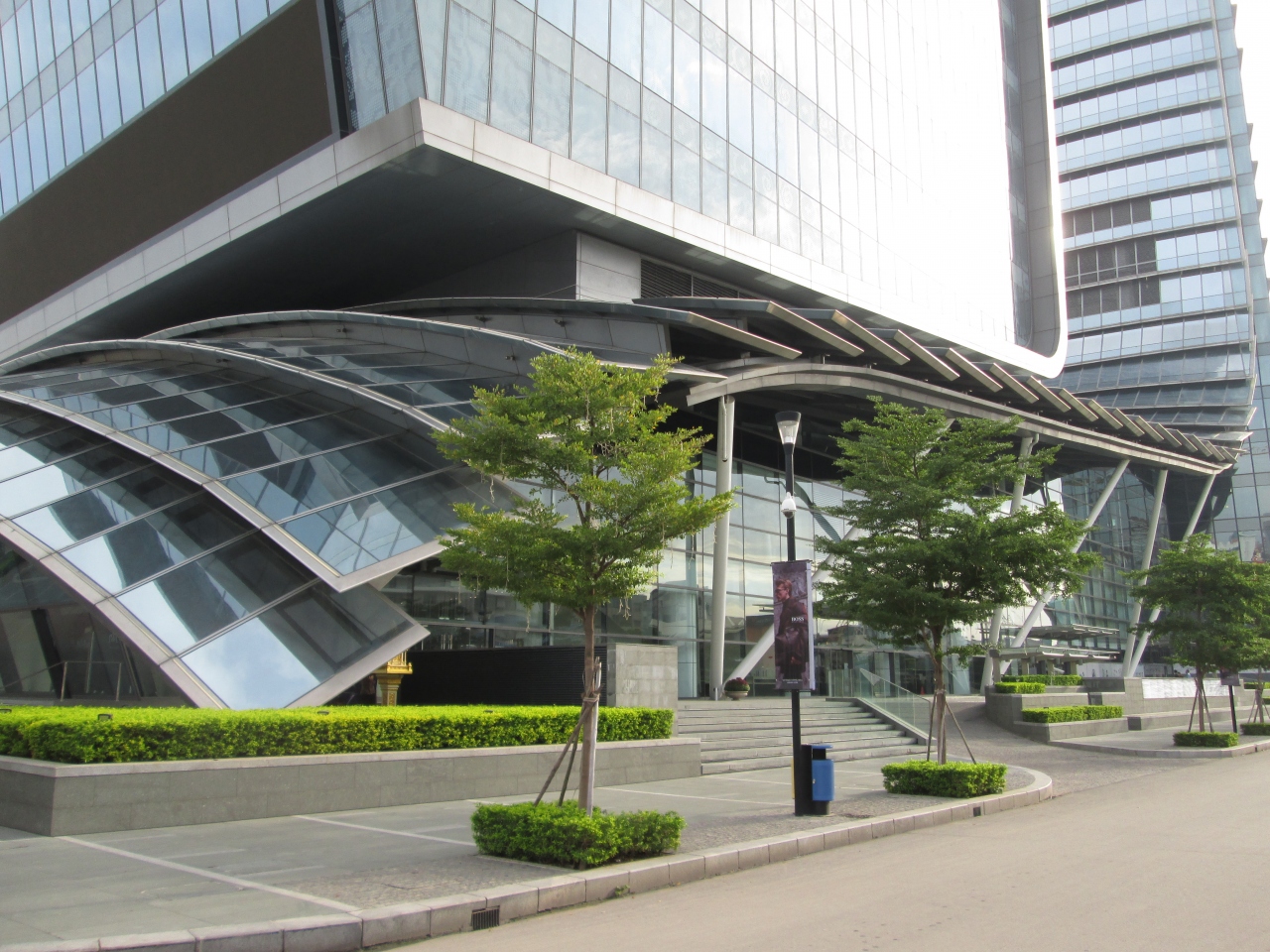 なんともユニークな形をした39階建ての高層ビル。設計者は意図したのでしょうか。へリポートの位置と形がくちばしに見えまるでペ... 続きを読むンギンのようです。遠くからだと気づきませんでしたが近寄ると“ペンギン”の前に四角いビルがくっ付いています。で、早速潜入開始…。まずは手前からです。難なく入れます。が、いきなりイギリスの高級車ロールス・ロイス・ファントムの展示会が…。場違い感丸出しですが意を決してエスカレーターで2階へ。開発元であるバタナック銀行がありました。結局、警備員と入口にあるコンシェルジュに尋ねたところ、“ペンギン”の方はまだ一部工事中であるし、パスがないと入れないとのことでした。そりゃそうですね、一般のオフィスビルですから。眺めるだけにしときましょう。 閉じる