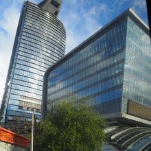 ひときわ高くそびえる輝くタワー。モード学園ビルをペンギンにしたような・・