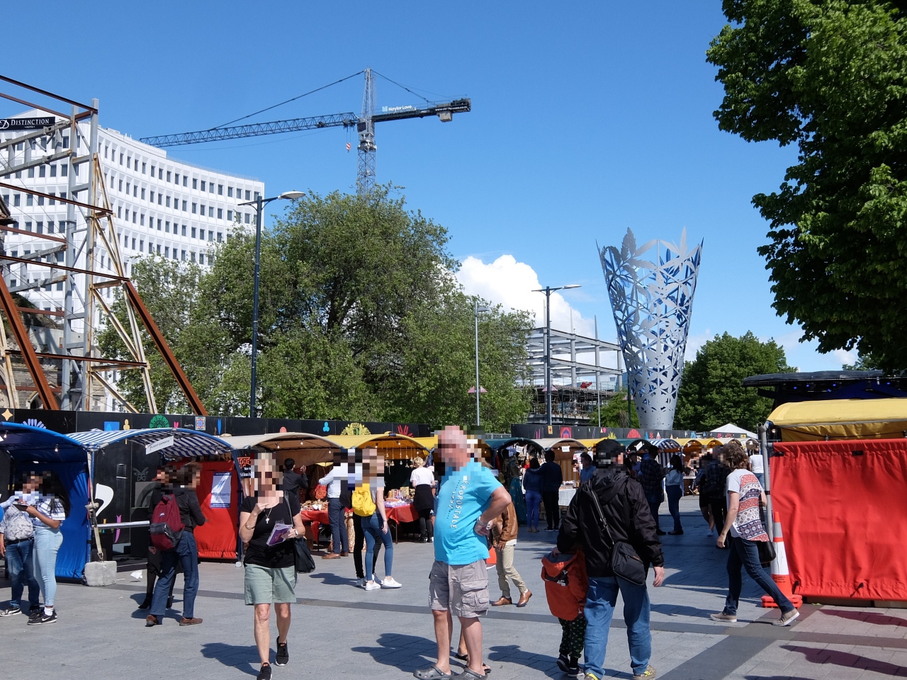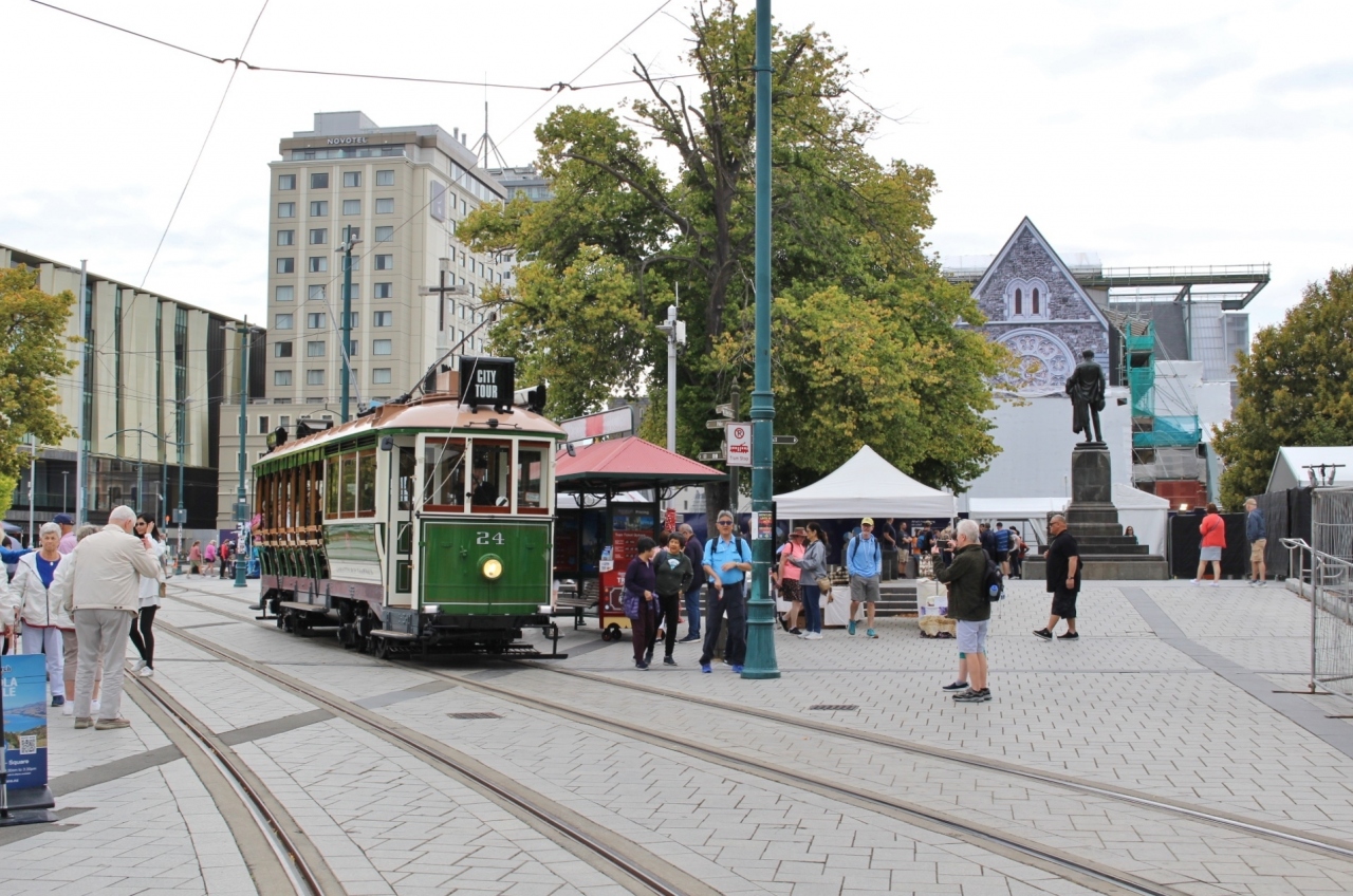 再建中の大聖堂とトラム乗り場