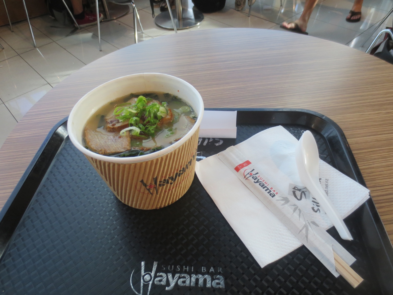 オークランド国際空港の中にある。搭乗手続きを終えて、入管のパスポートチェックも終えた制限区域内にある。免税店やカフェなどと... 続きを読むともに空港の駐機場が見える一角に店を出している。握り寿司(14NZ$~19・5NZ$=約1200円~1600円)、巻き寿司(10NZ$~12NZ$=約840円~1000円)などが店頭に並ぶ。日本価格からすれば、やや高い。搭乗すれば、2時間後ぐらいに機内食が出るが、この日は給油の関係で成田行き直行便なのに、オーストラリアのブリスベーンに給油寄港するというので軽く腹ごしらえするため、巻きずしを買った。まあまあ美味しかった。 閉じる