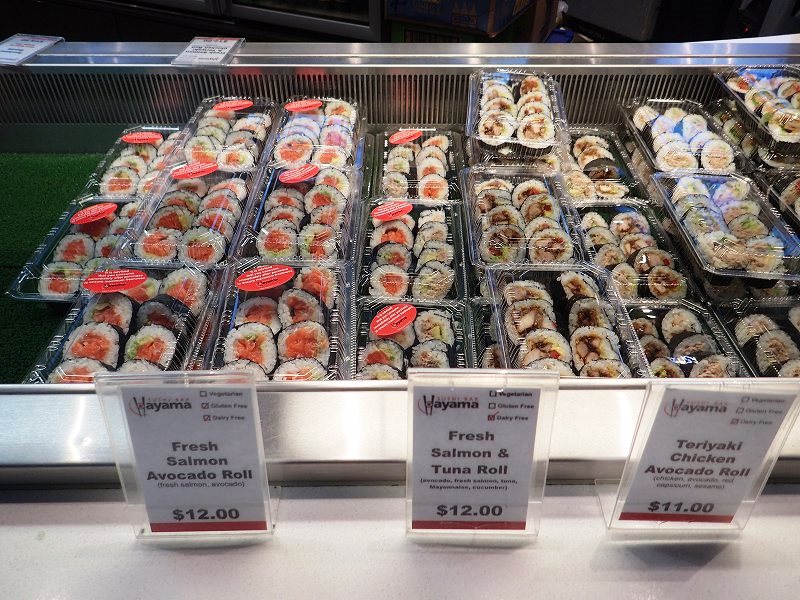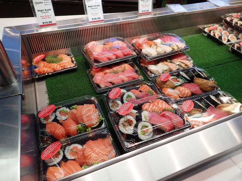 握り寿司、巻きずしが並ぶ。おいしいが、日本価格からすれば、やや高い