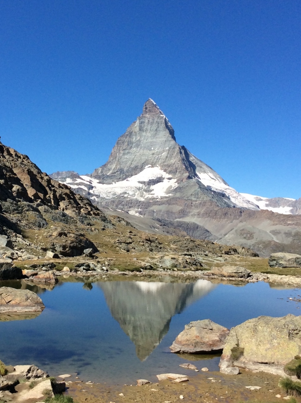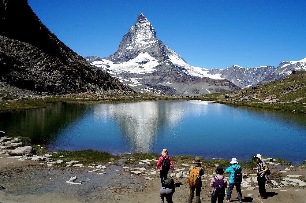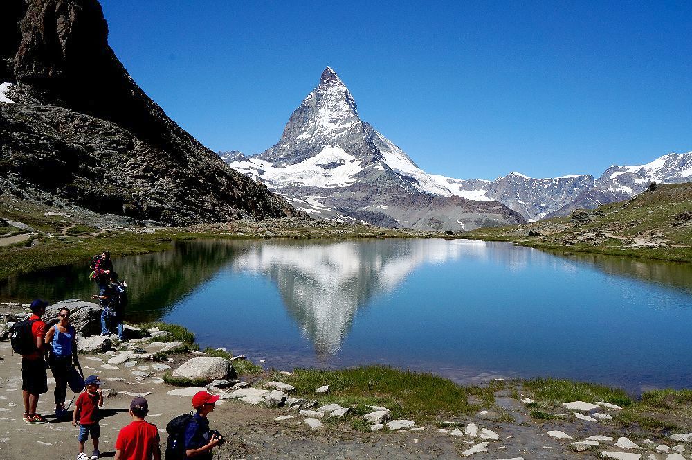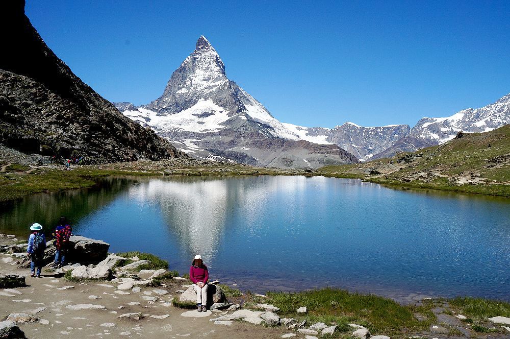 湖の正面に聳えるマッターホルンは素晴らしい絶景です!