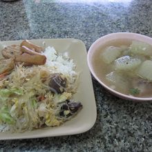 それよりも、店内に並ぶおかずから好きなものを選んでごはんの上に盛り付けてもらうほうが美味しそうで、次々にお客が来て注文していました。
