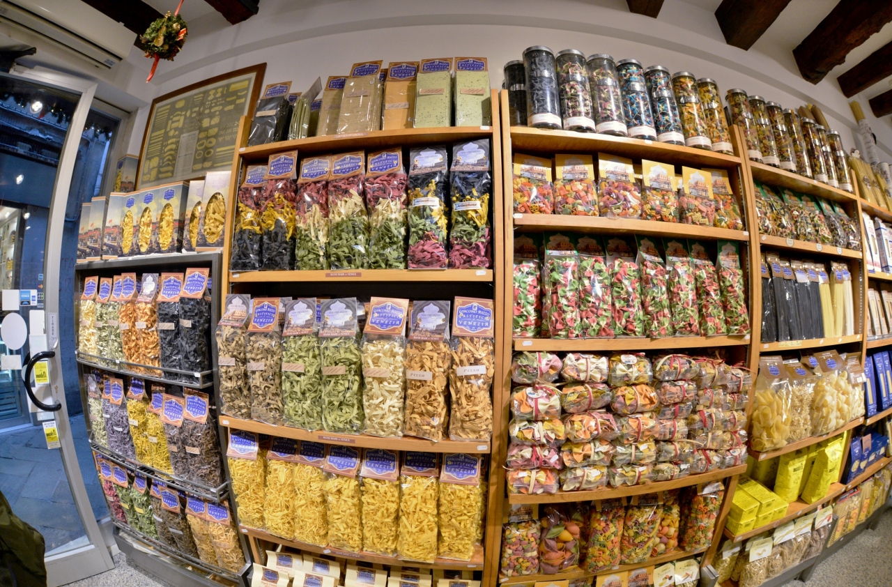 パスタの土産にはジャコモ リッツォ 店内製造のベネチア風パスタとイタリア中のパスタが購入可能
