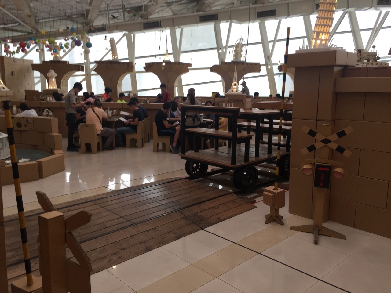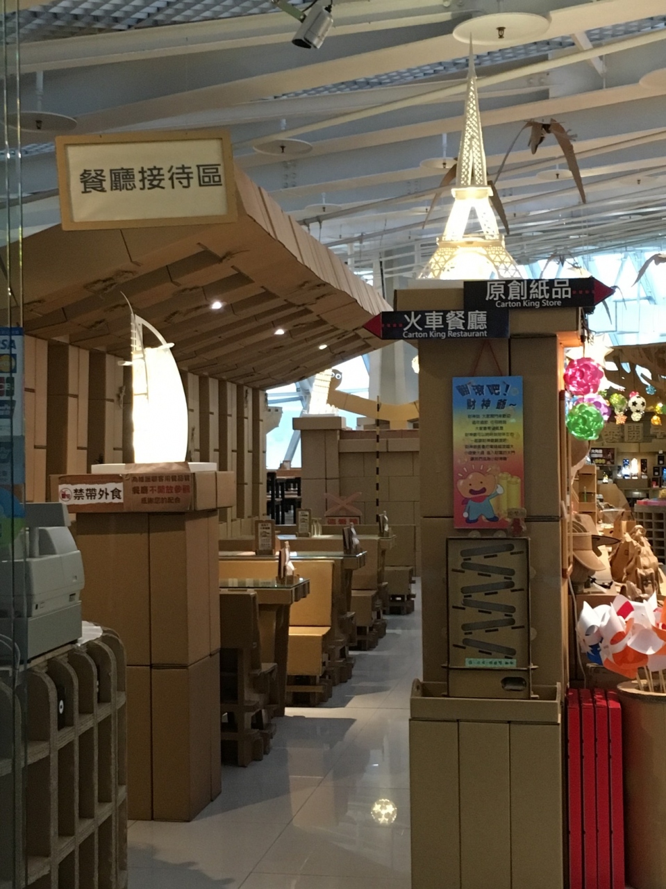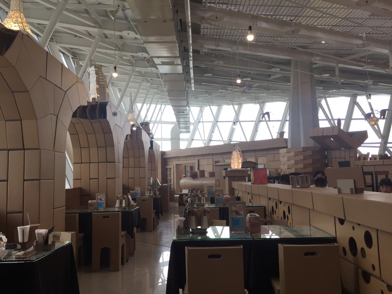 店内すべて段ボール。そしてやっぱりそんなに混んでない笑