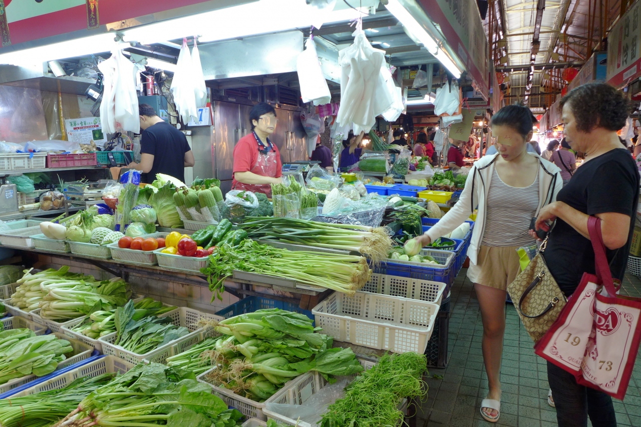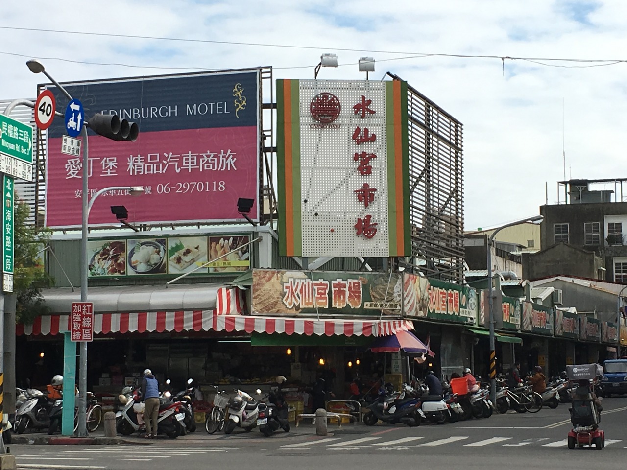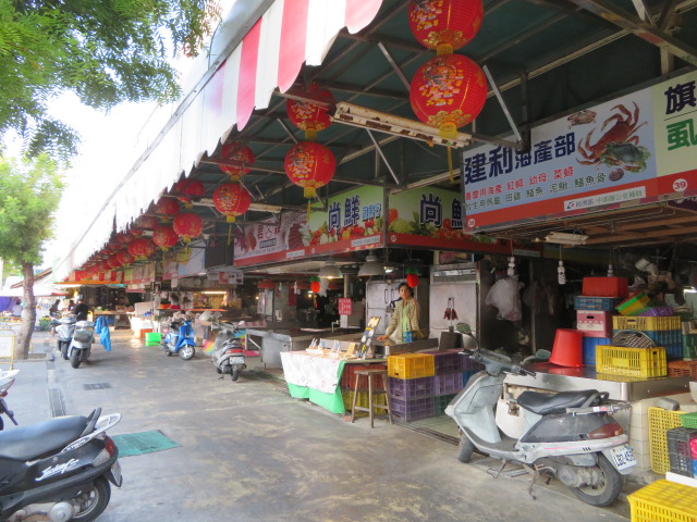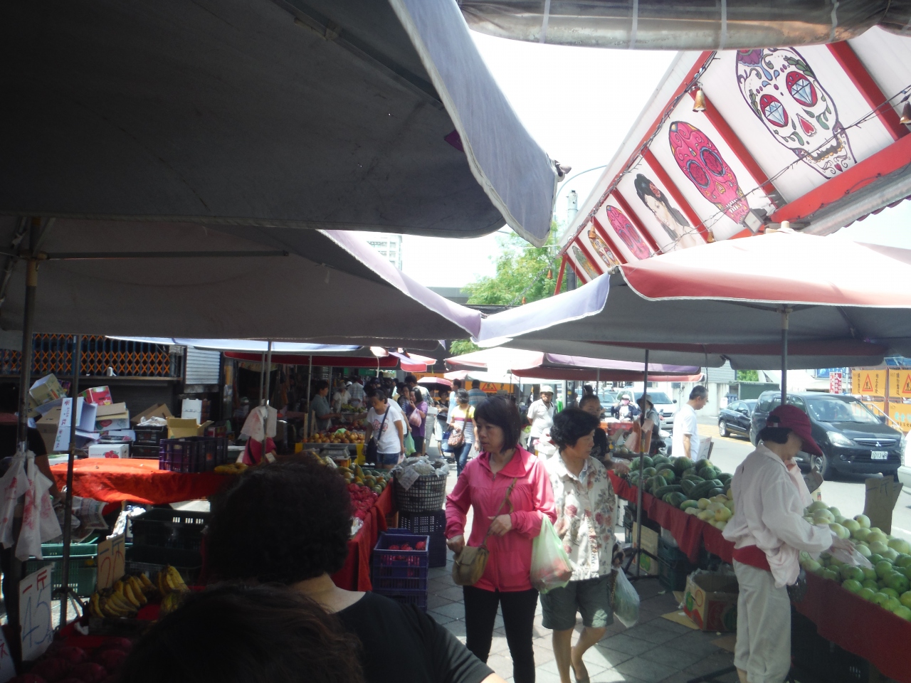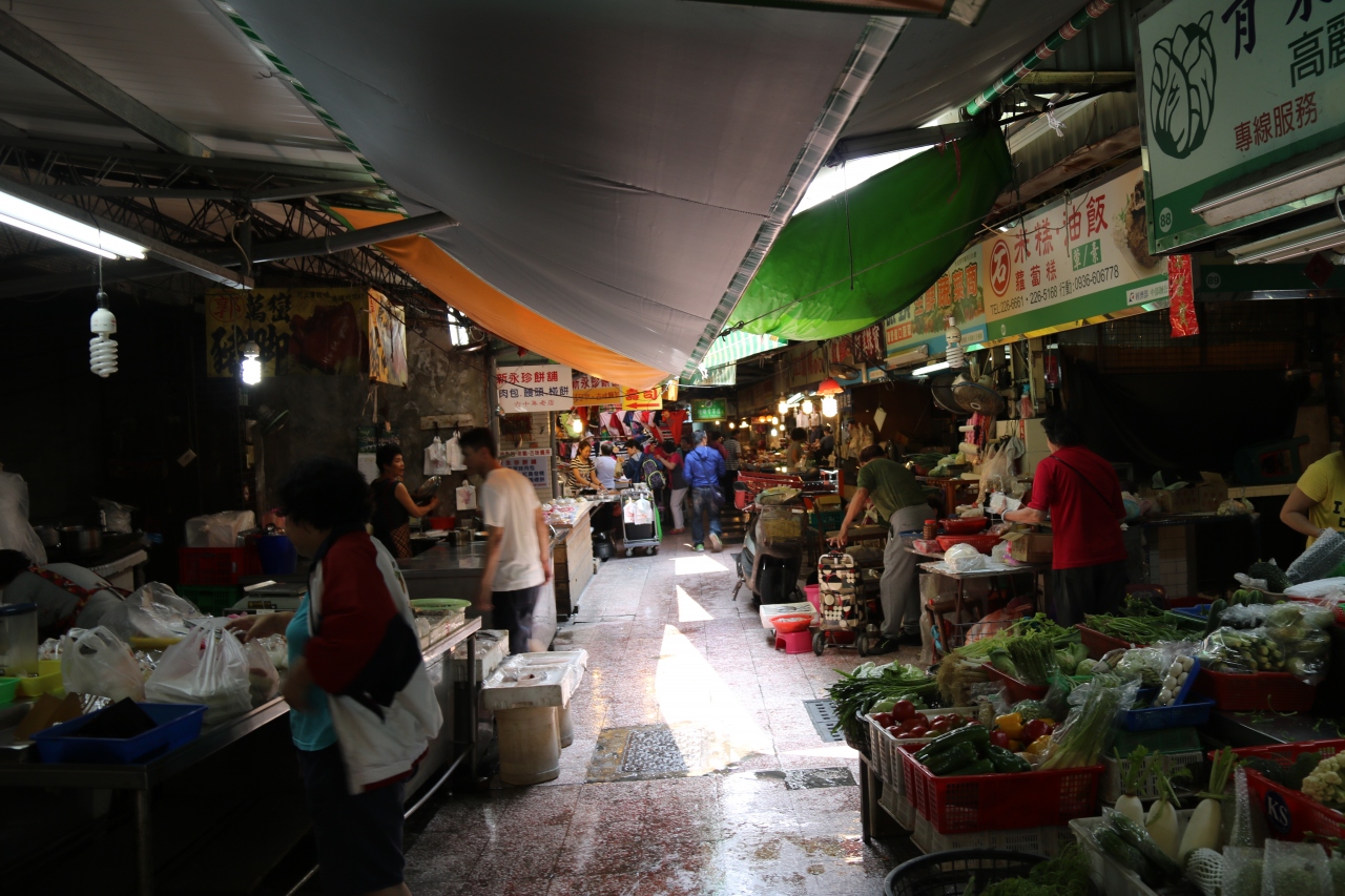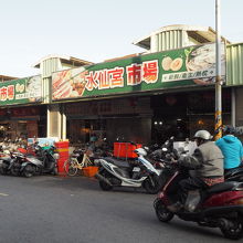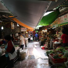民権路側の出入り口。看板のように肉、野菜、果物などの店が多い