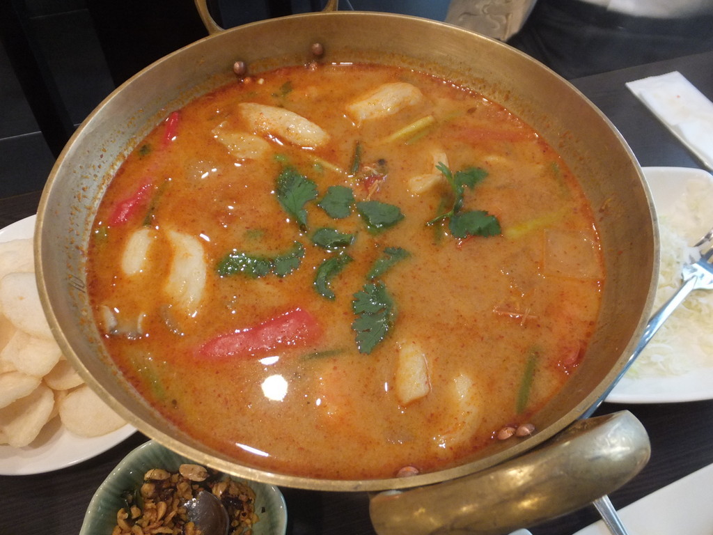 友人たち3人で来ました。高雄明誠店は出来たばかりですが、高雄市内には支店が何件かあります。店内のインテリアの素晴らしく、高... 続きを読む雄のタイ料理店では一番のゴージャスのお店です。同じタイ料理:瓦城高雄明誠店が近くにありますので競争は大変ですね。注文は、酸っぱい辛いサラダ風:酸辣涼拌海鮮(タイ式シーフードサラダ)チョイ辛250元、インゲン炒め:蝦醤四季豆:ちょい辛150元、鶏のタツタ風:泰式椒麻雞:180元、豚肉そぼろ風:200元、トムヤムクン:酸辣海鮮湯:300元、牛肉料理:320元、ドリアンと芋の料理:100元を注文、美味しかったです。