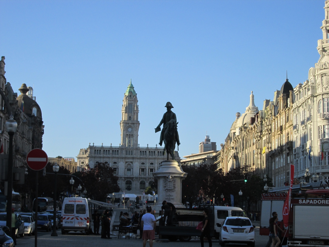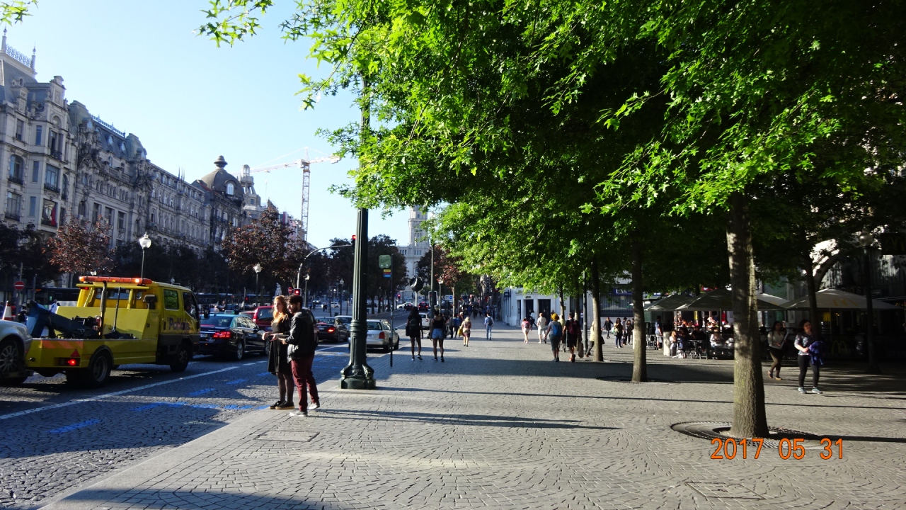 「ポルト市庁舎」の手前の大きな広場に面している通り