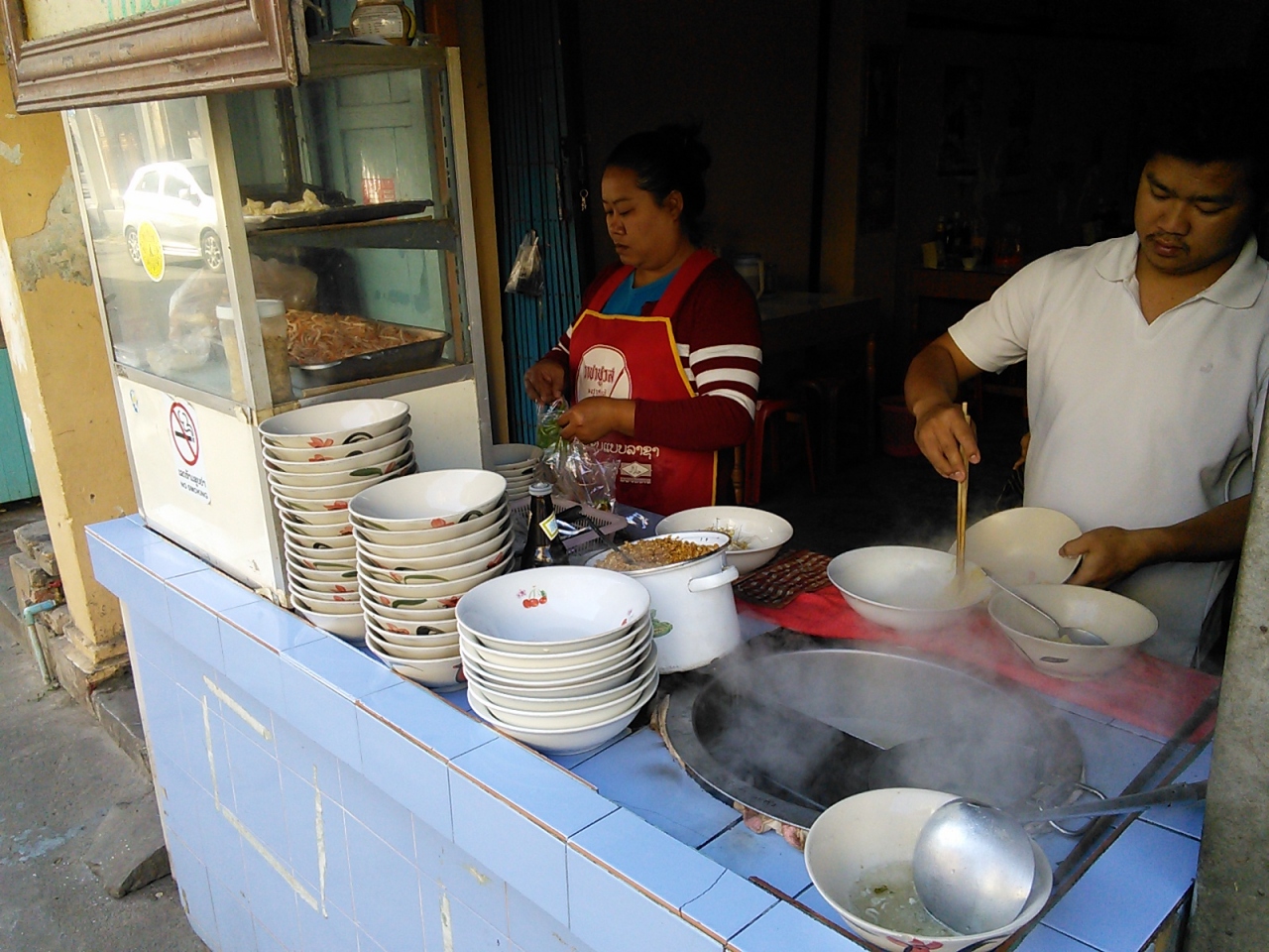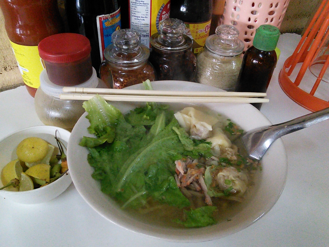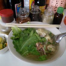 サワンナケートにあるミーキャオ(ワンタン麺)の人気店。「地球の歩き方13-14」では「ミスター・ティー・ノーイ・ヌードルシ... 続きを読むョップ」と紹介されていますが正しい名前は「ミー・キャオ・ペ・ヨー」です。ラオス語のみの小っちゃな看板が掲げられています。人気のとおり確かにうまいです。スープは透明であっさり気味ですがそれは各自お好みで各種調味料で味付けするため。しかしダシが利いているのでライムを搾っただけでもなかなかイケます。周りの人を真似して味付けすると台無しになるので気を付けて下さい。具は豚肉のチャーシューのスライス、レタス、ネギ、そしてワンタン。この手作りワンタンが絶品でいい味出してます。これで15000kip。ローカル店の麺料理としては決して安くはありませんが納得の価格です。営業時間は6:00~11:00(不定休)ですが材料がなくなり次第終了なので早めに行って味わって下さい。 閉じる