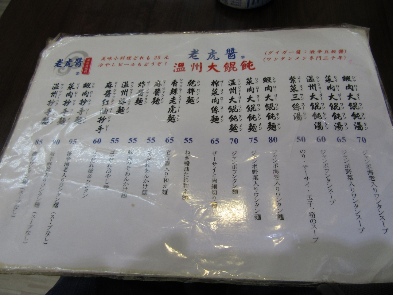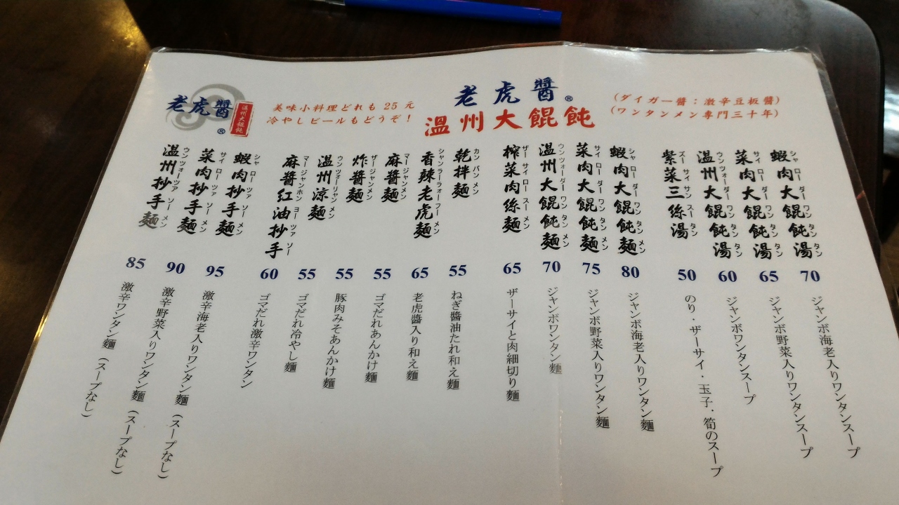 ※老虎醤 温州大餛飩は閉鎖しました