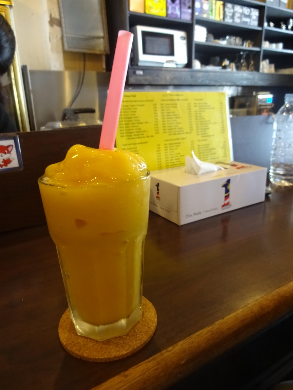 私はマンゴーのジュース(シェイクのようにどろっとした者だった)