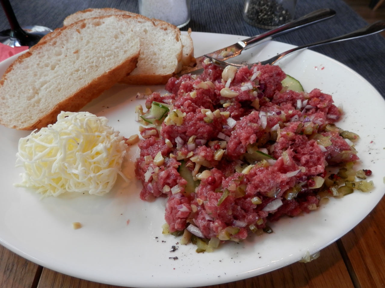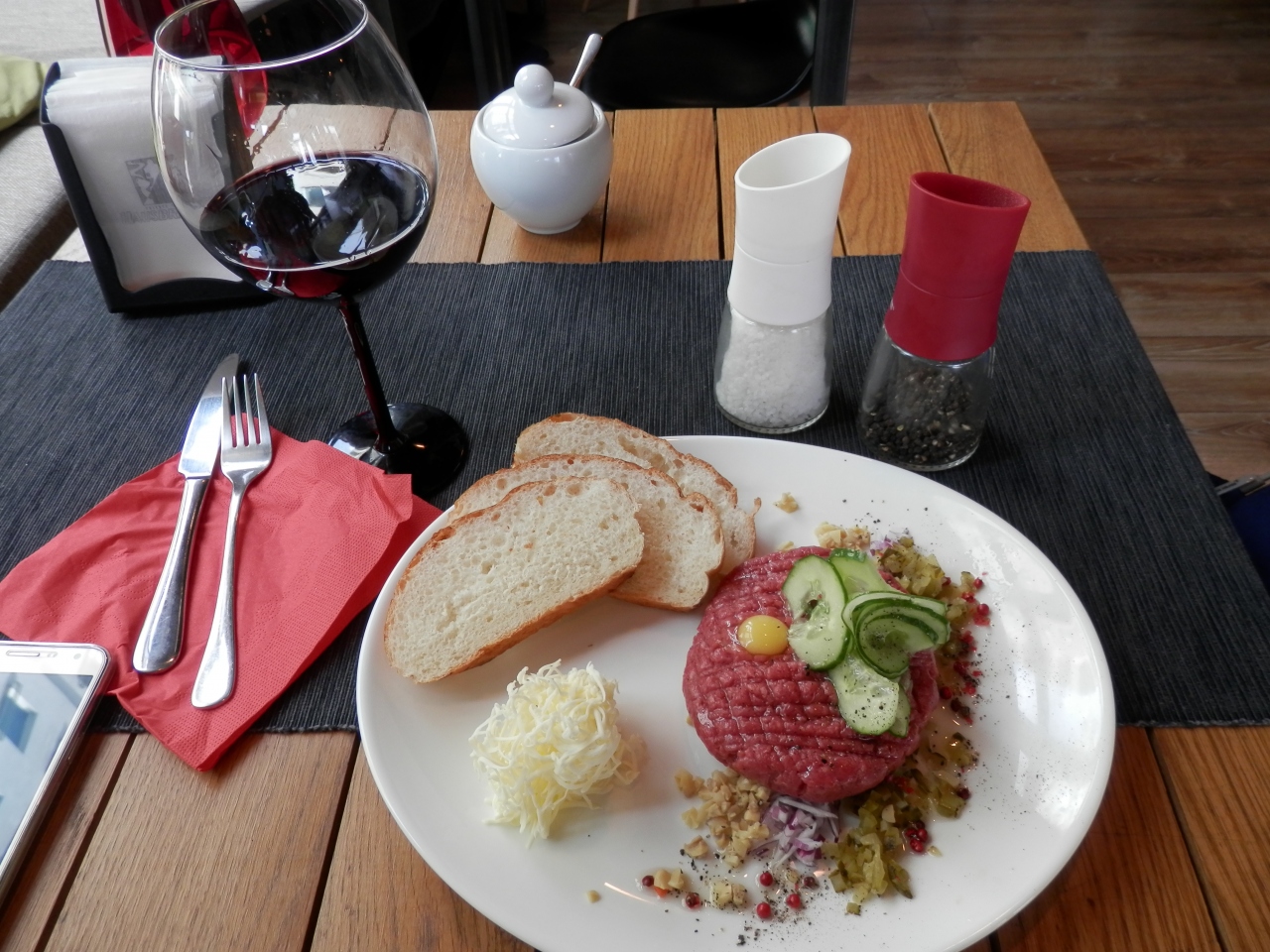 Kaviarnioteka ランチセットもあり、ワインの種類も多く、グラスでも注文できるお手頃価格のレストランです。ウエイトレスのお姉さんがポーランド語のメニューを説明してくれました。