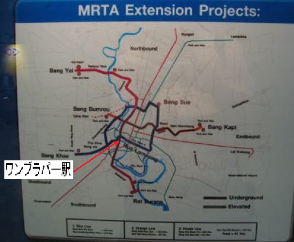 そのパープルラインとファランポーン駅からの地下鉄の延長路線が結ばれるのが、ワンブラパー駅です。