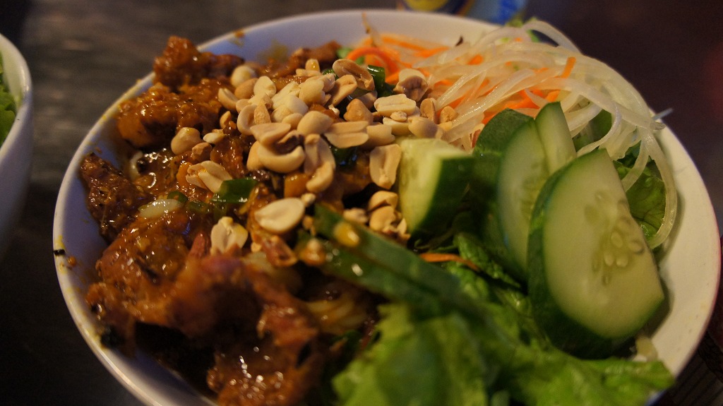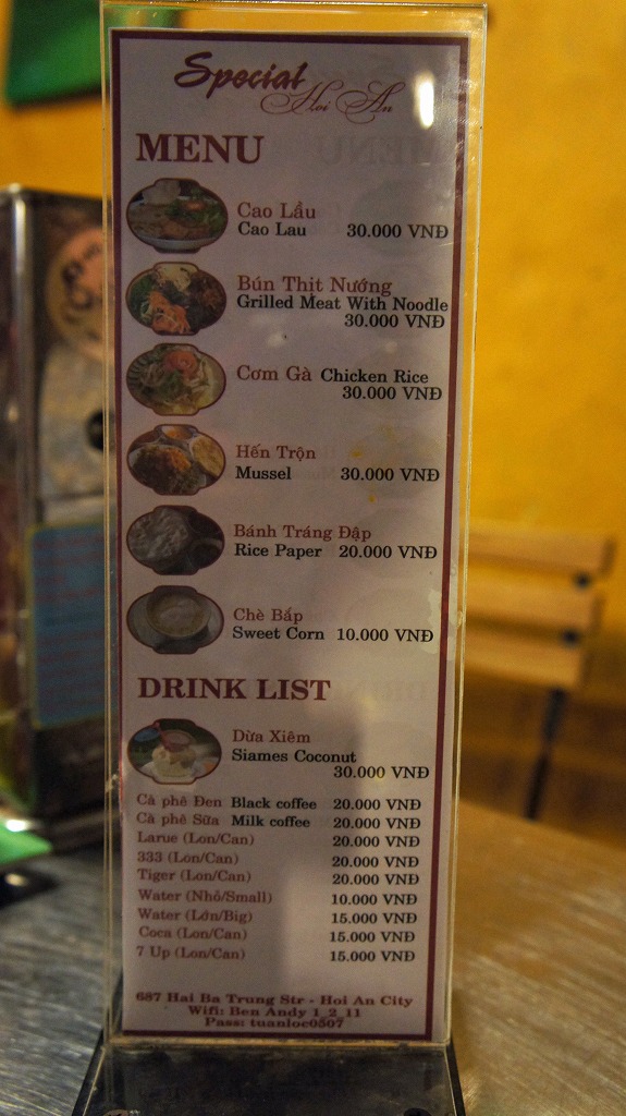 ヴィンフン・ヘリテージに滞在していた時に一度、アナンタラに移ってからももう一度、おいしくて安いので2回食べに行きました。お... 続きを読む客の半分以上はベトナム人の観光客と地元の人、欧米人のお客も多いですが日本人は少ないです。最初の晩はコムガー(チキンライス)をいただきました。内臓の入ったスープもおいしかったです。ビールは自分で冷蔵庫から持ってきた方が早いです。最後に飲んだスイートコーンのチェーが最高位美味しかったです。ホイアンのトウモロコシはただでさえ甘くてモチモチですがチェーにしても変わらない甘さでした。そのおいしさが忘れられずに数日後にもう一度行きました。店のお兄さんがオススメの麺にしました。焼き肉のたくさん乗った汁無しのブンもカオラウもおいしいです。二人で1,000円でおつりが来て大満足の店です。 閉じる