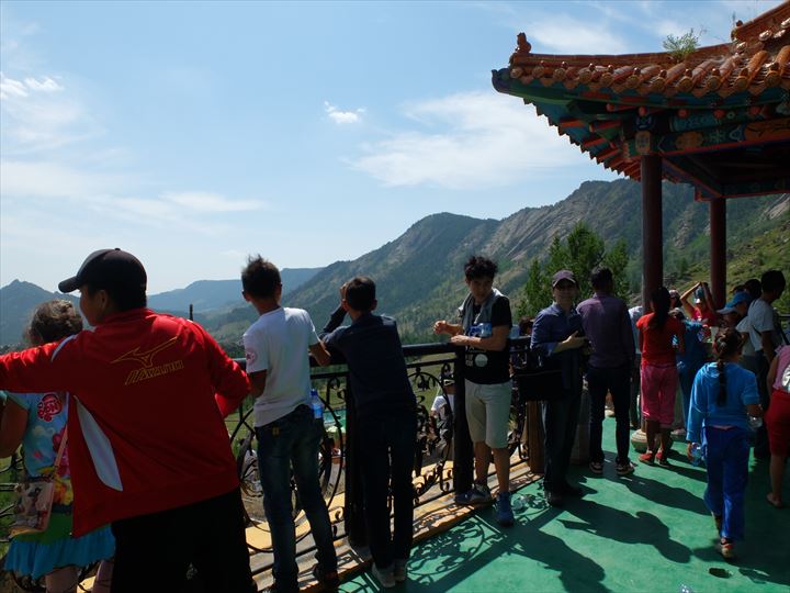 五体投地の作法を教わっていた人々。隣の小さい廟も見学可