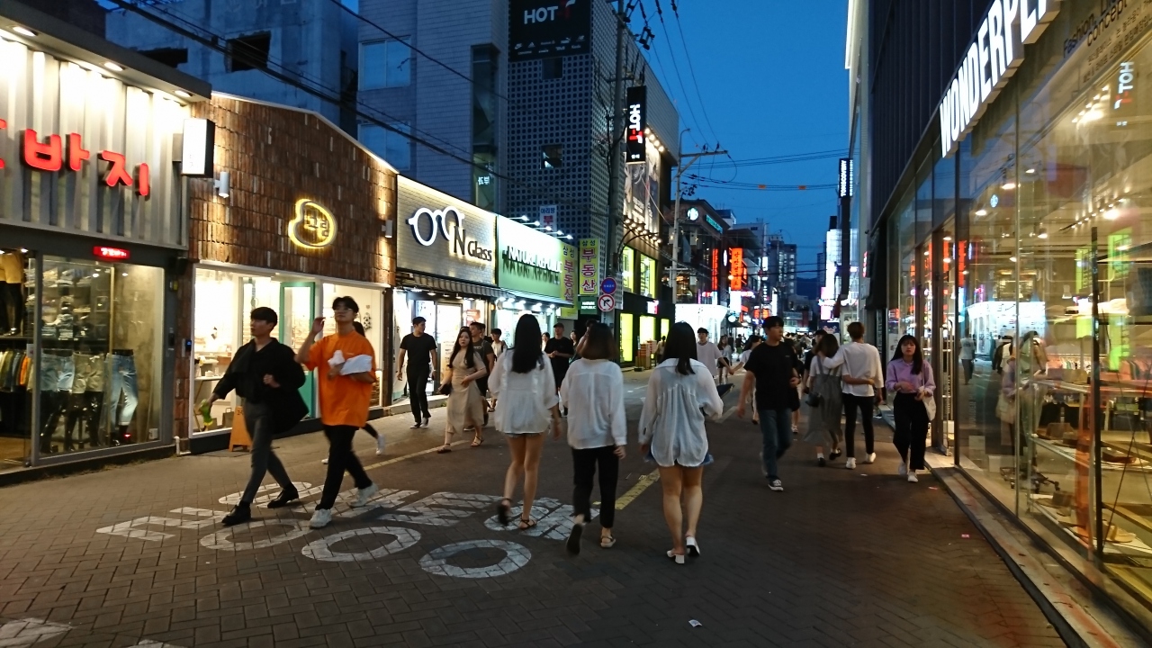 大邱市街の中心で商業施設が集まる通り、ブランドショップも多数あり、百貨店もあります、日系のお店もあります、昼間も夜も若い人...  続きを読む中心に多くの人が行きかう場所です。