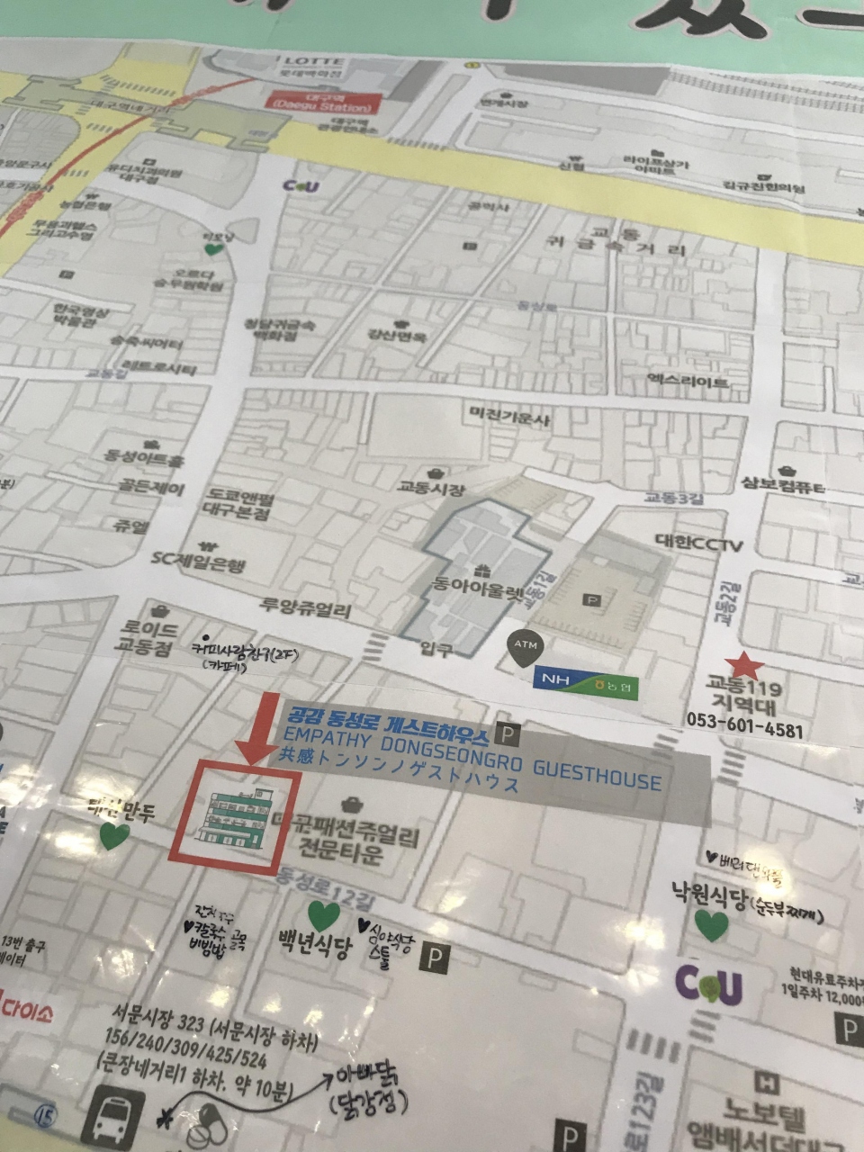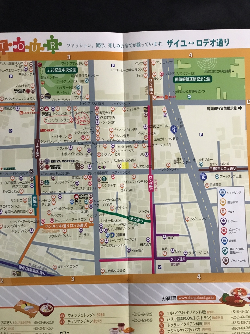 大邱のインフォメーションセンターで東城路ぐるり一周というマップをもらってそれを参考にしながら散策しました。