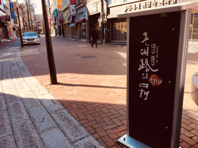 大邱でも中心のエリアの通りのようで、観光客も何人か見かけました。カフェ、飲食店、デパートなど、何でも揃う感じですね。
