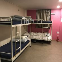 ドミはカーテンが無いパイプベッドだけど、施設は広くて綺麗