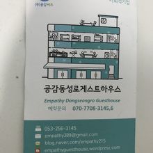 メインの交差点から1分のところにあるエンパシーゲストハウス