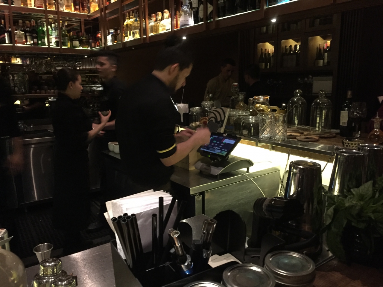 日本のお酒も楽しめるウェイティングバーカウンター