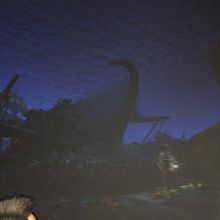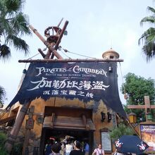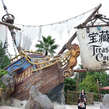 アトラクションの入り口にある難破船