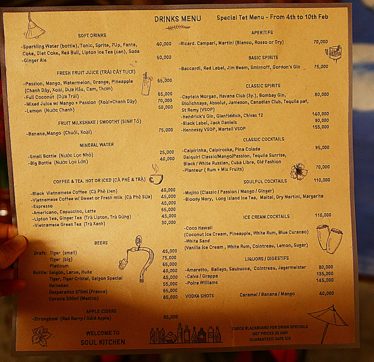 メニューにあるバナナマンゴースムジー 75000VND(ベトナムドン)