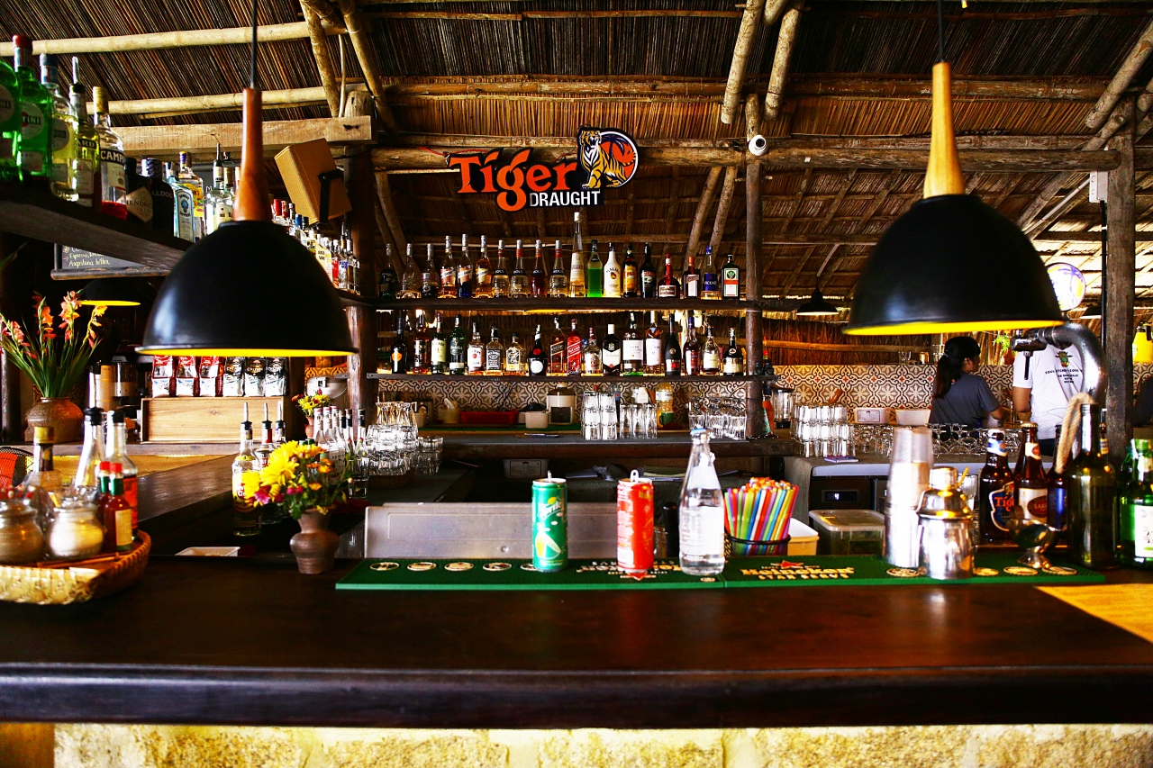海を眺めながら日陰で落ち着けるビーチレストラン