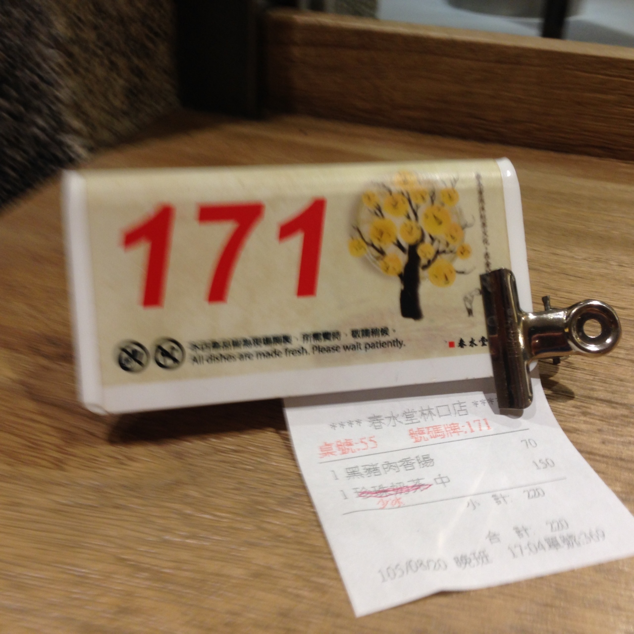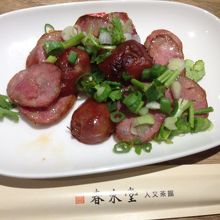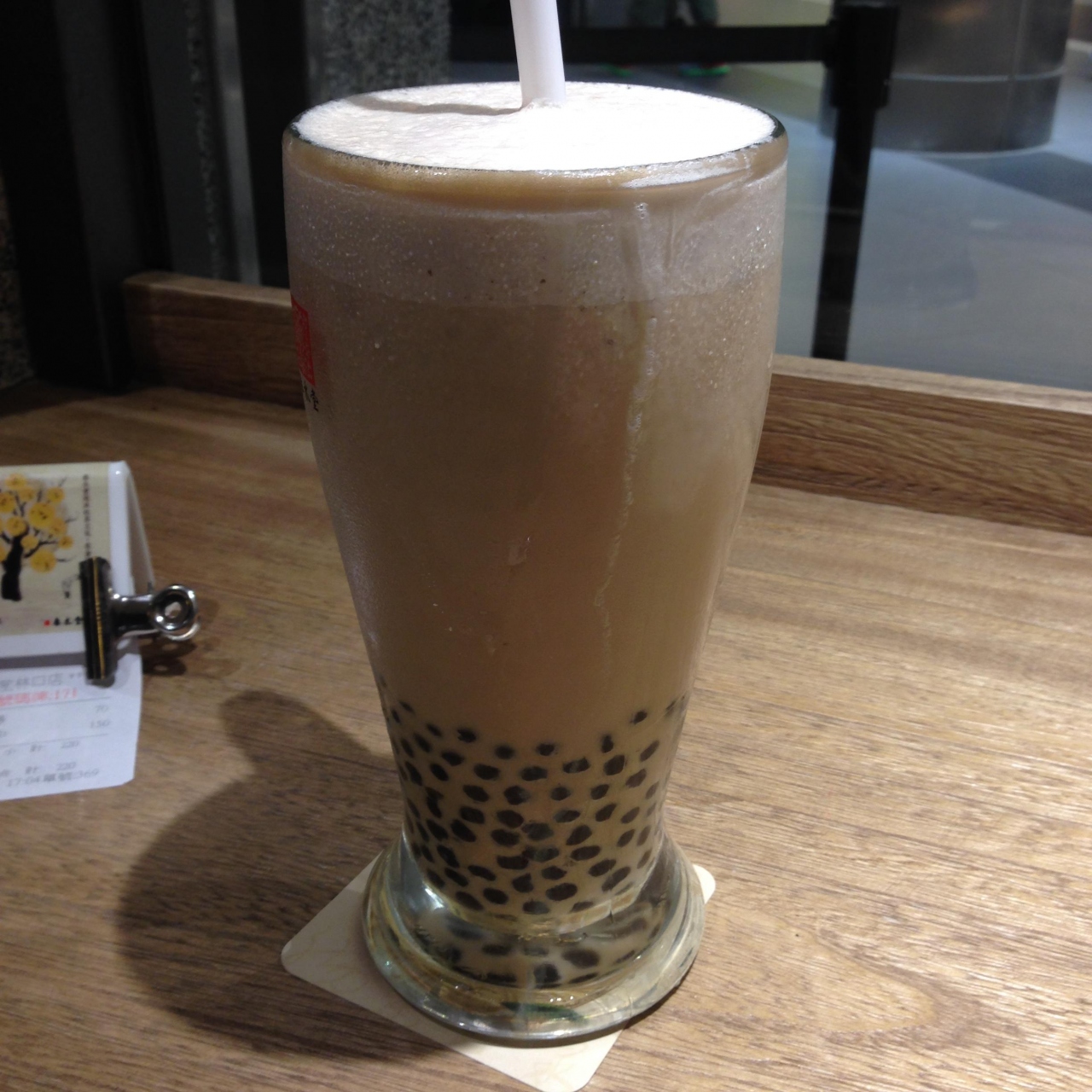 席に戻ってしばらくすると注文したタピオカミルクティーと台湾香腸(ソーセージ)が到着。味は期待を裏切らず美味。ミルクティーも上品な味でした。