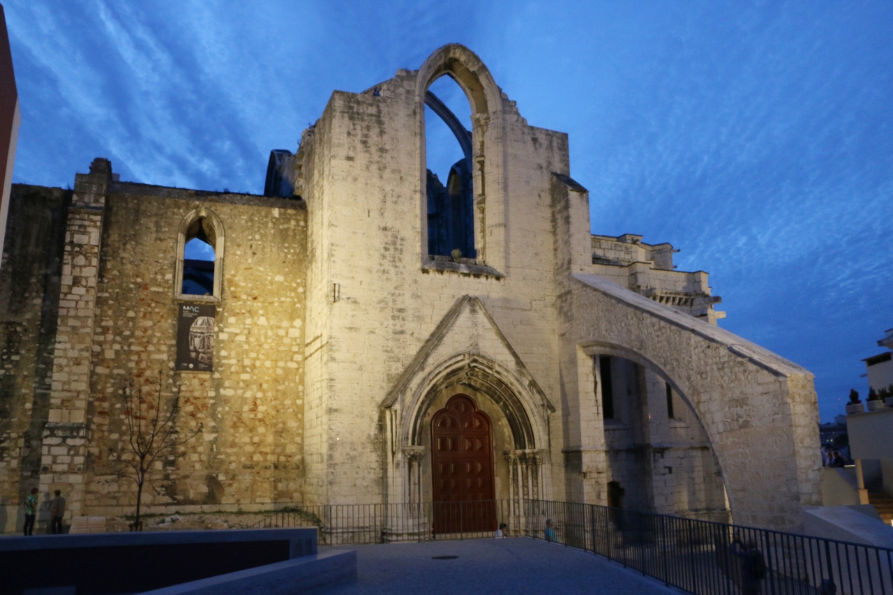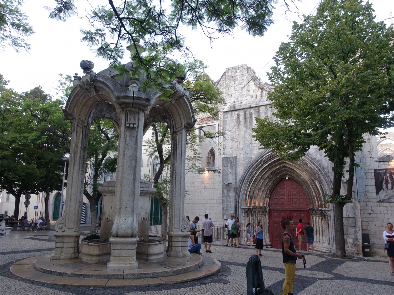 1389年建立のカルモ教会は1755年のリスボン大地震で屋根が崩落してしまい、そのままの(空が見える)状態で保存されており、現在は考古学博物館になっていますので一見の価値があると思います。 その際に、昼間はレストランやカフェのテラス席がカルモ広場に並んでいるので、ランチやお茶などをされても良いと思います。
