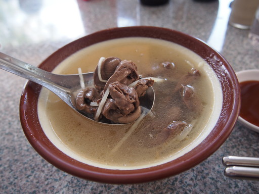 下水湯と鴨心湯はモツのスープ。針生姜が入っていて臭みなくいただけました。
