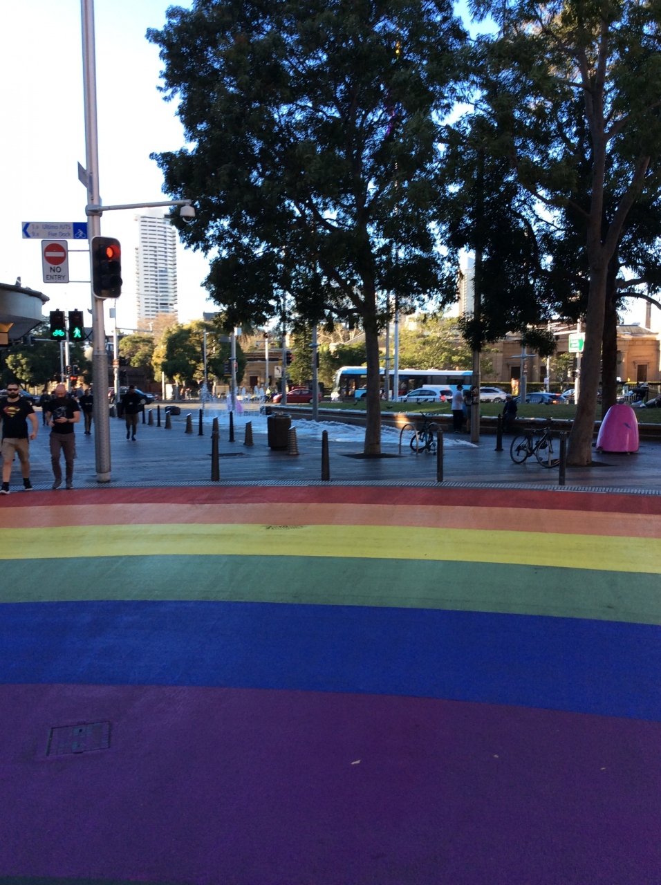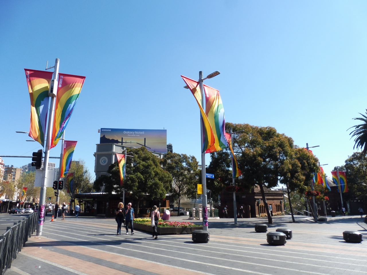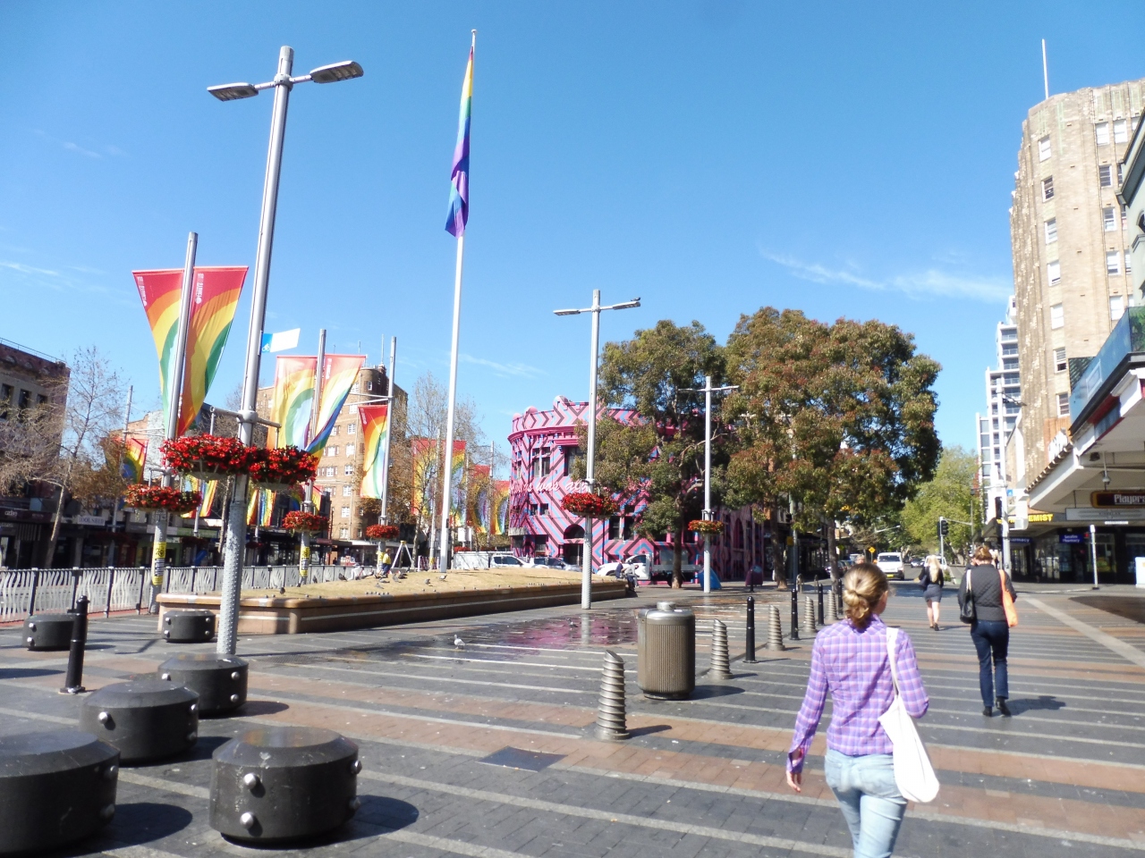 シドニーのゲイカルチャーの中心地オックスフォードストリートに有る広場です。