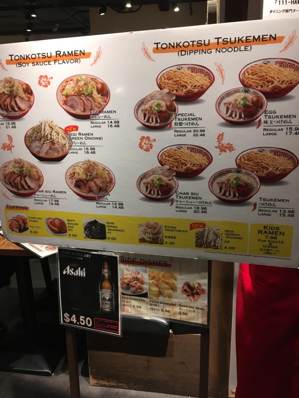 ワイキキ横丁のつじ田で、つけ麺を食べました。日本の感覚からすると値段は高いです。