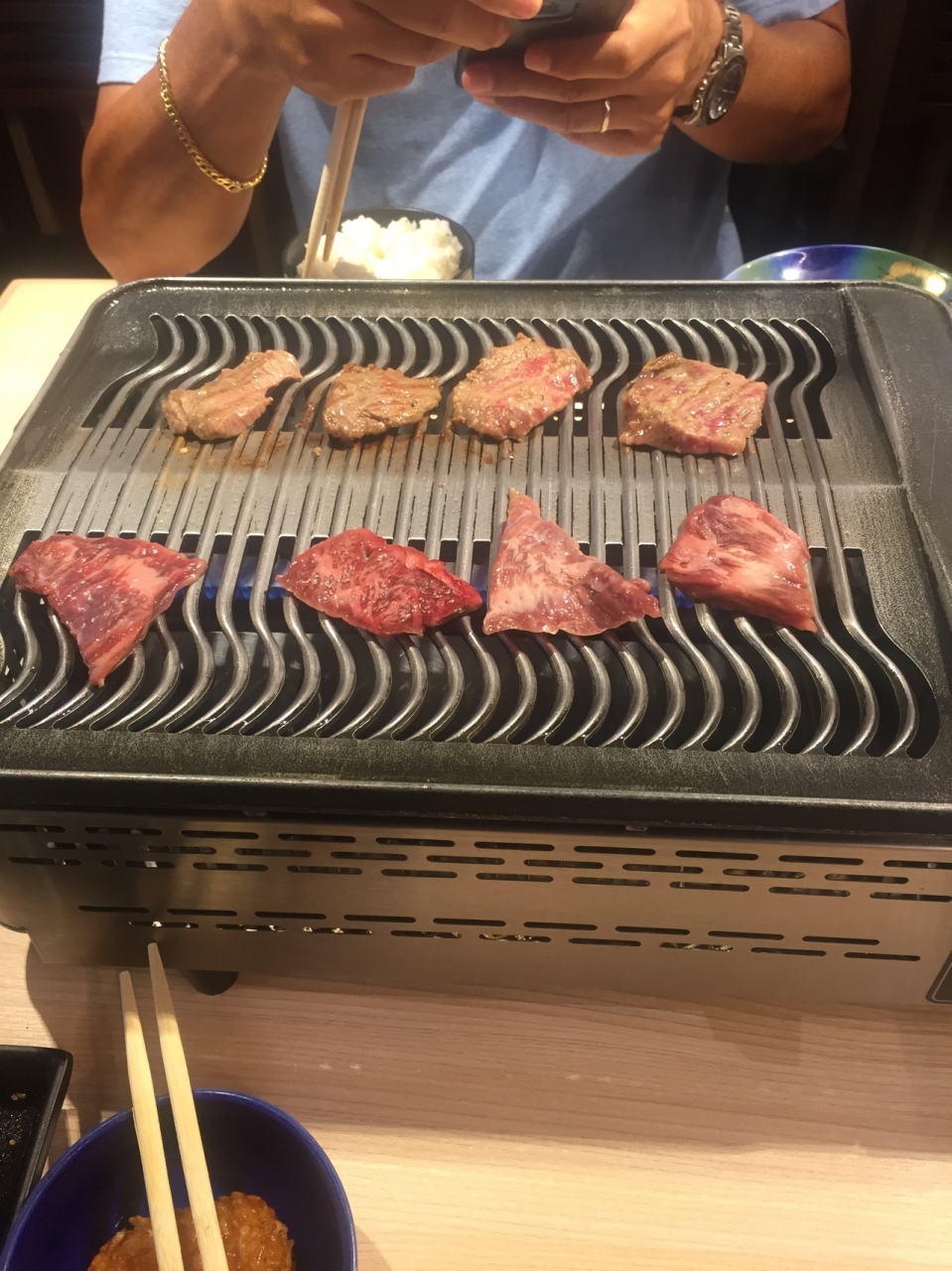 ワイキキで働いているので、横丁を良く利用します。おにぎり屋、抹茶屋、天丼屋さんに良く行きますが今日はお友達のリクエストだっ... 続きを読むたので焼肉屋に行きました。ここは以前入る前に表に出ていたスペシャルセットを、お店の人に勧められ入ってオーダーしたら、スペシャルは6時までです。と言われた事があったのですが、もう一度トライしてみました。行く前にwebで営業時間とメニューを確認、ハッピーアワーメニューがあり、ちょうどその時間帯だったのでお店の方にハッピーアワーメニューありますか?と尋ねると、ないとの事。webのメニューにはあったのにないと言われ、あれはその月のもので今月のではないとの事。webには◯月のハッピーアワーとは書かれておらず、普通にメニュー欄に載っていました。日本からのお友達も一緒だったし雰囲気悪くするのも嫌だったのでおとなしく引き下がりましたが、毎回毎回何かしらあるのでもう行きません。お味の方も値段が高い割に良い食材を使ってるとは思えない。キムチはスーパーで売ってるしょっぱいだけのキムチだし、お肉の味付けも濃すぎ、サラダとビールが一番美味しかったかな。 閉じる