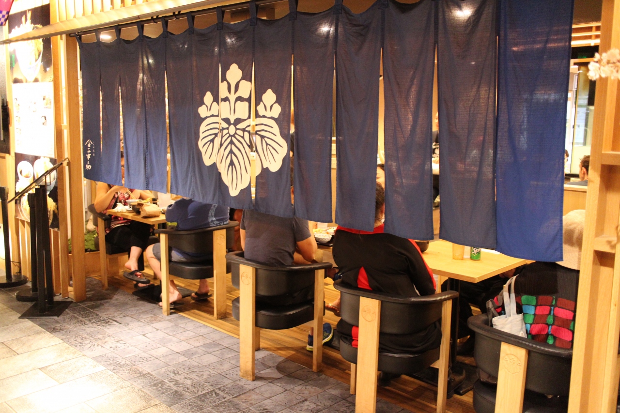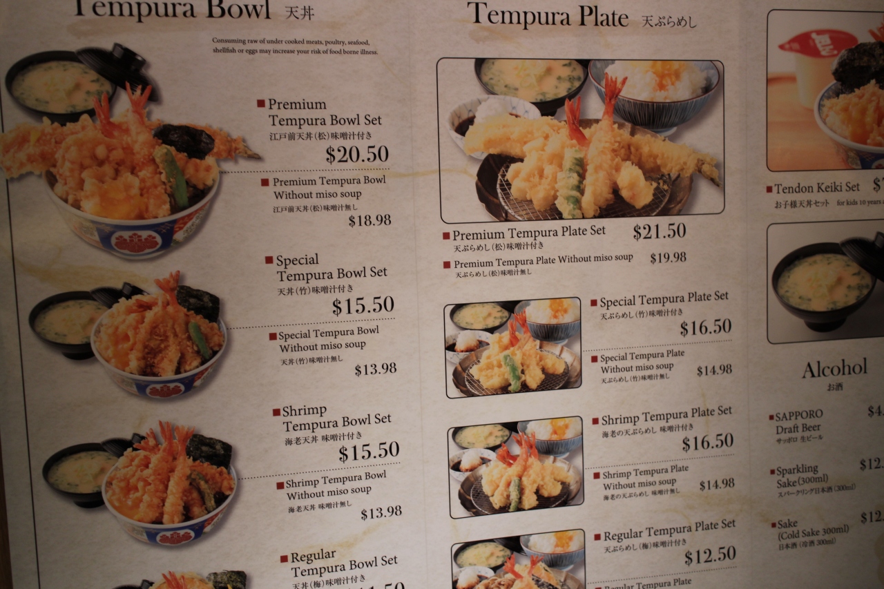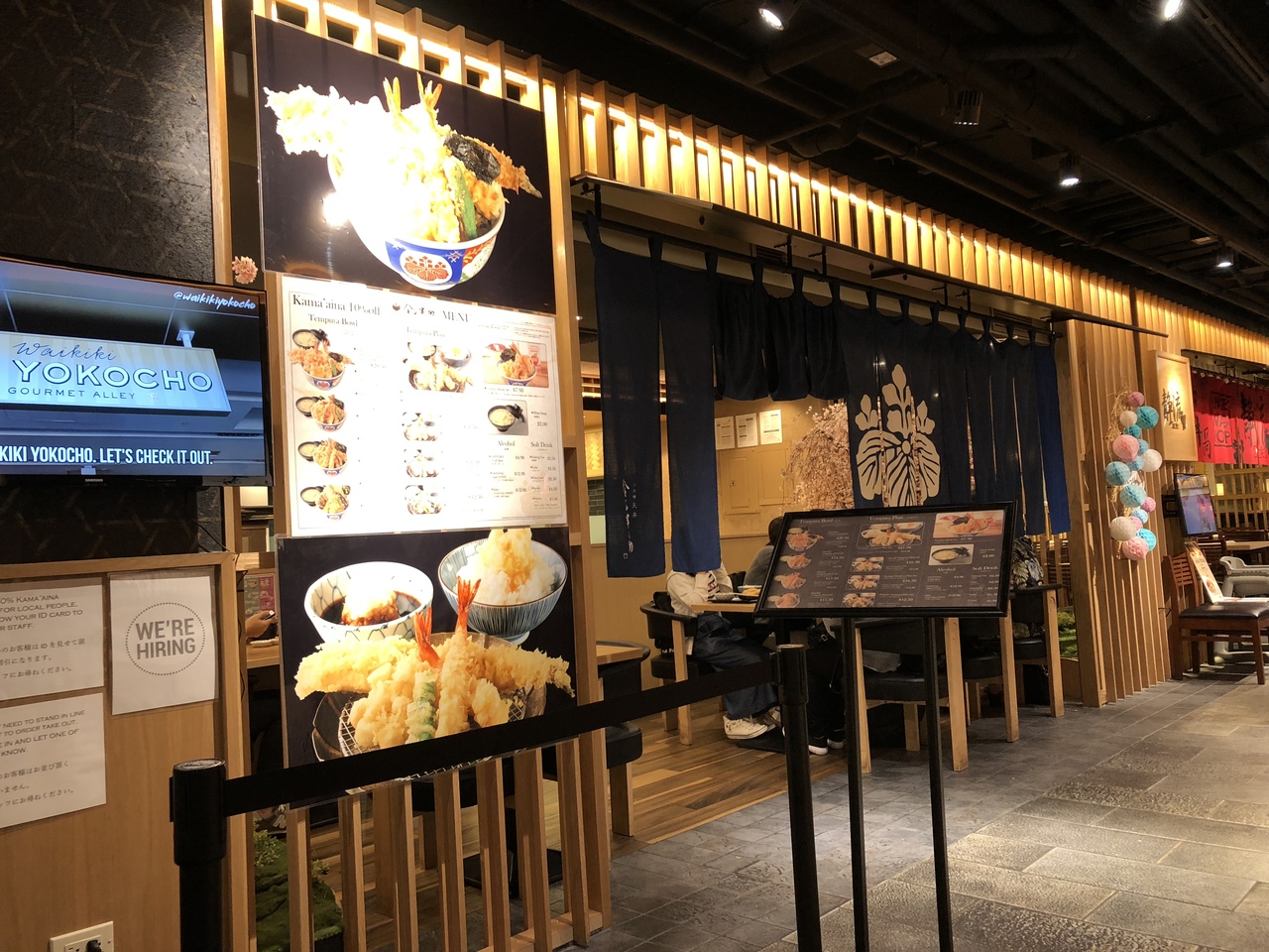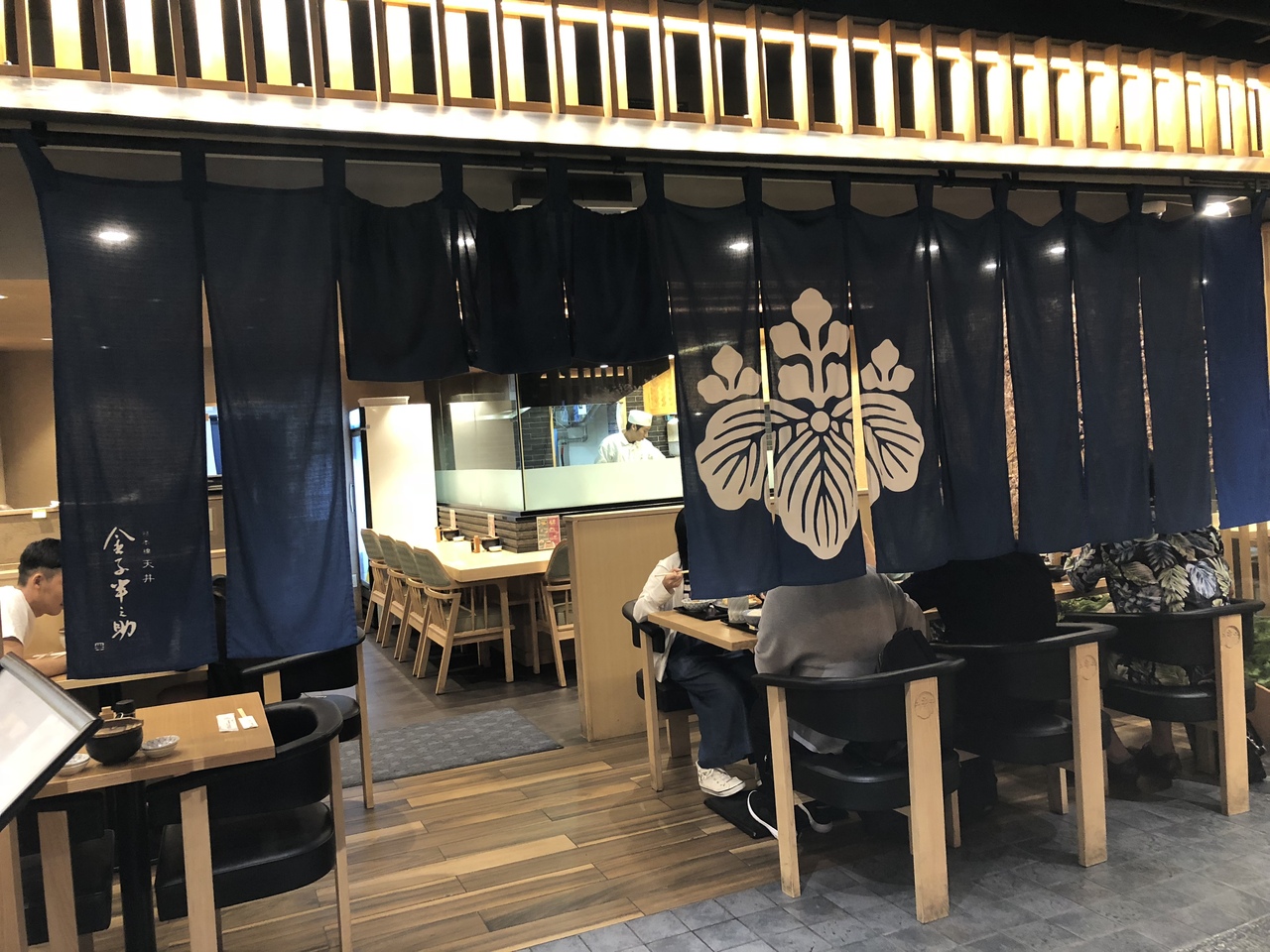 ラーメン、寿司、てんぷらなどの和食レストランが集まるモール、てんぷらの金子半之助にならびました