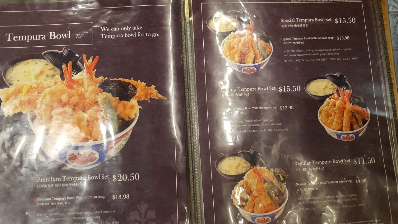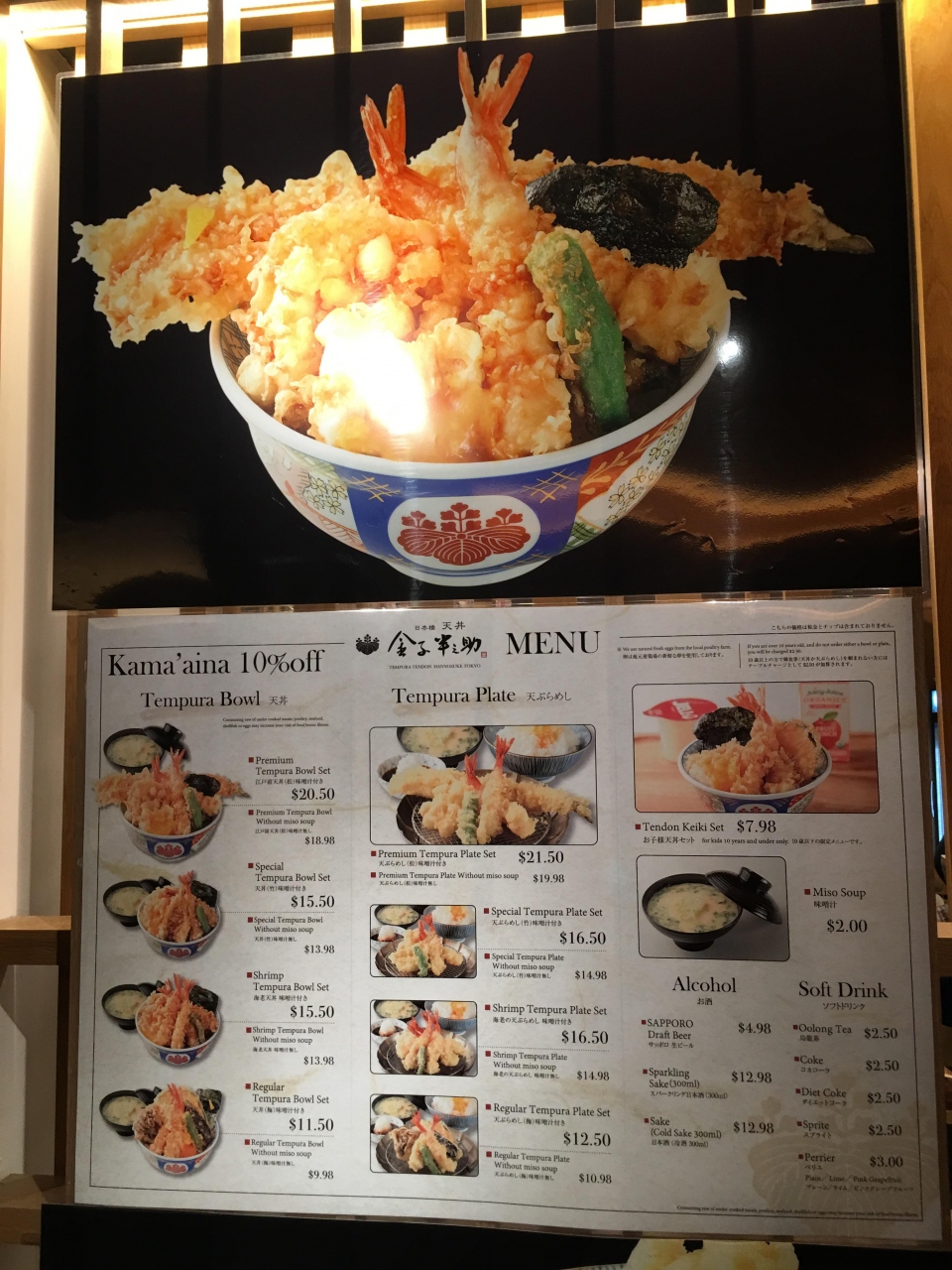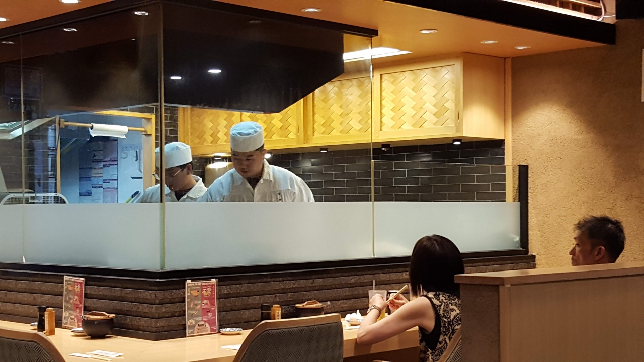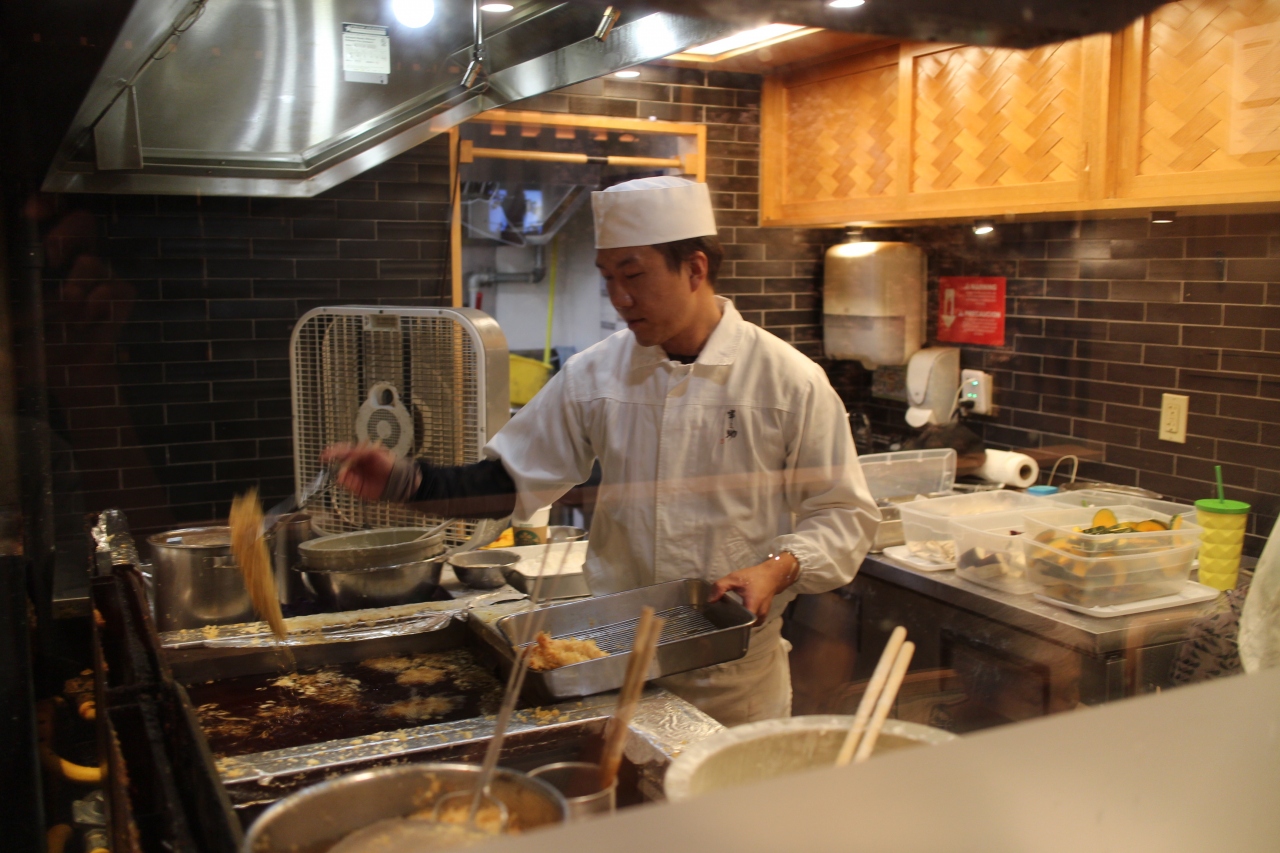 ラーメン、寿司、てんぷらなどの和食レストランが集まるモール、てんぷらの金子半之助にならびました