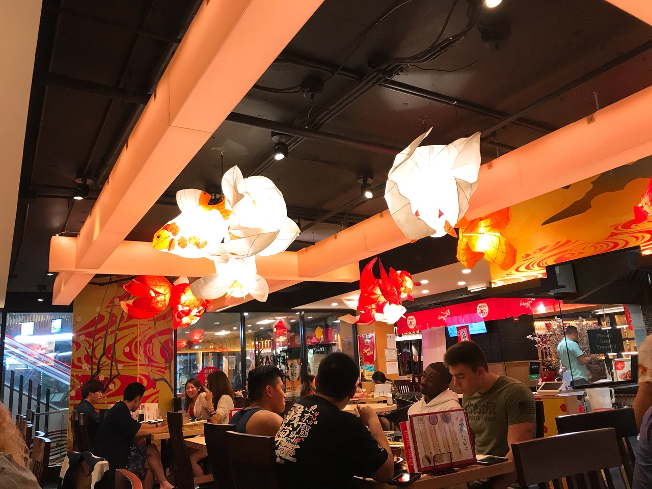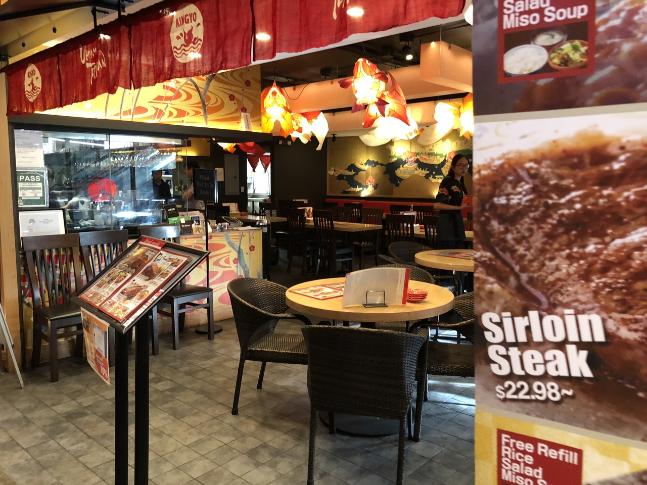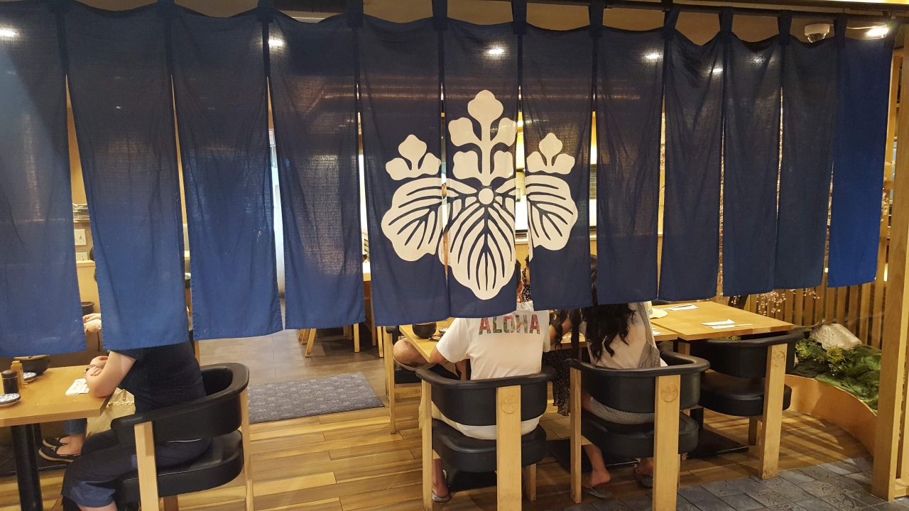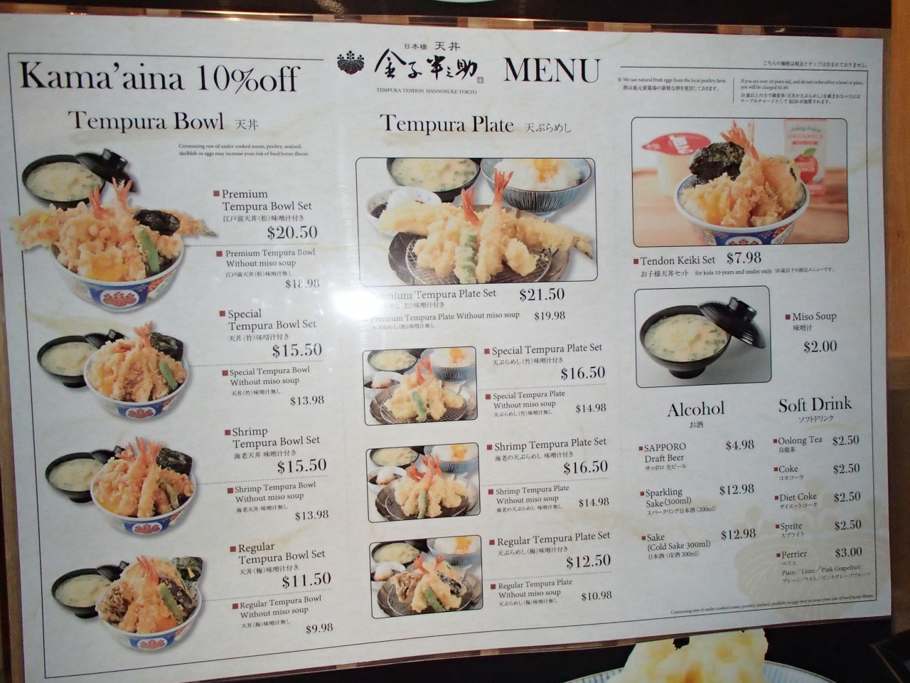 ラーメン、寿司、てんぷらなどの和食レストランが集まるモール、てんぷらの金子半之助にならびました