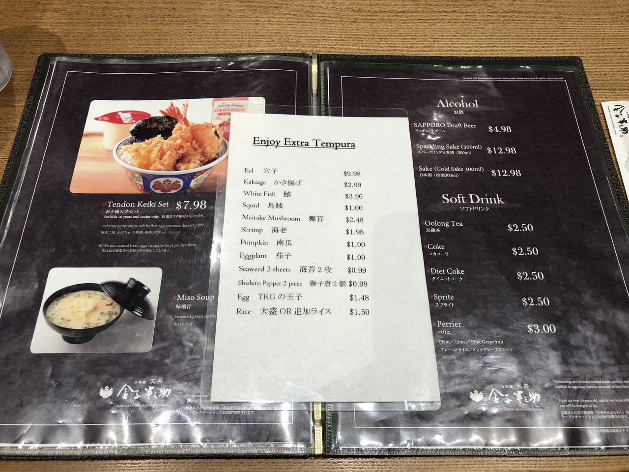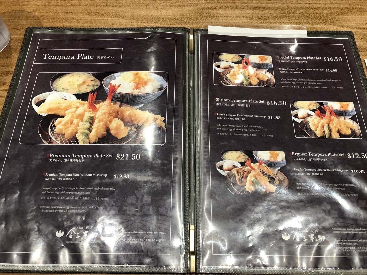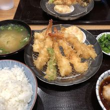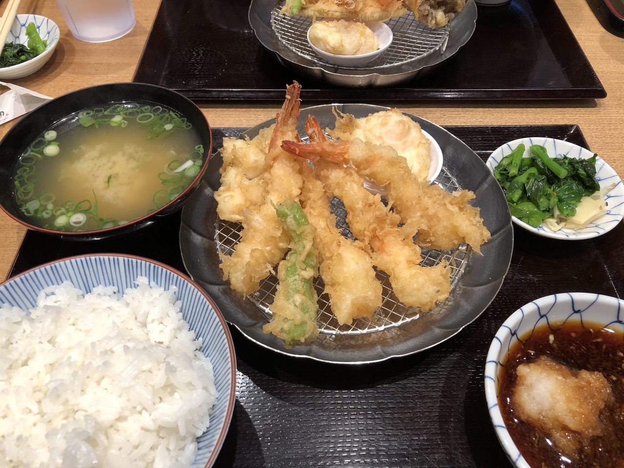 テンプラプレートセットのみそ汁付き、みそ汁無しをそれぞれ注文。