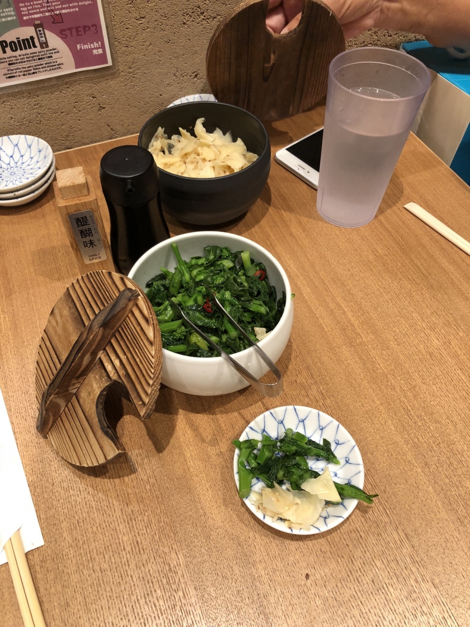 卓上の自分で好きに取れる、青菜のおひたしが美味しかったです。