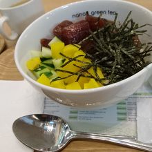 プレートに付いてる半熟卵はご飯に乗せると卵かけご飯になります。